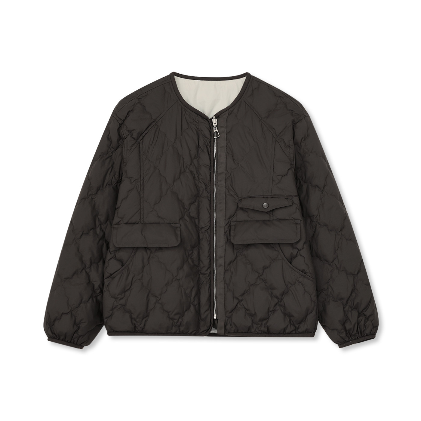 咖咪羽两面穿羽绒服2025冬季新韩版宽松复古菱形格90%白鸭绒外套