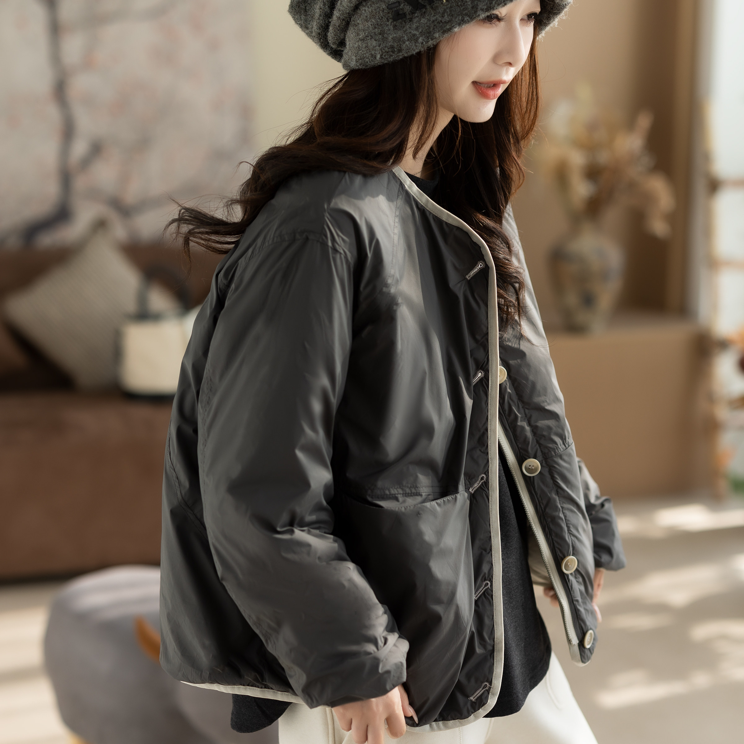 佟丽娅明星同款鸭鸭轻薄羽绒服短款女2025冬新款修身无领内胆保暖