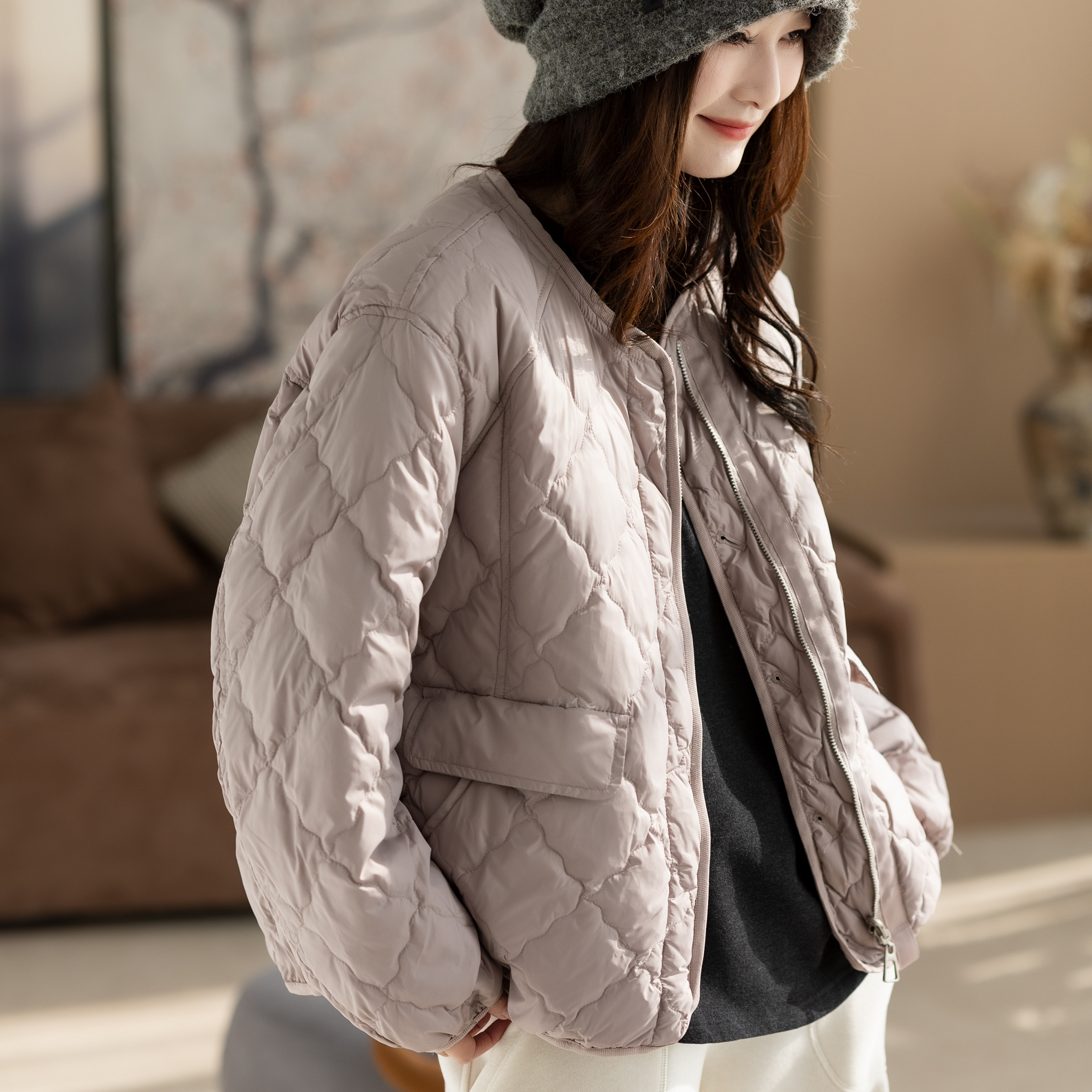 佟丽娅明星同款鸭鸭轻薄羽绒服女冬季反季休闲圆领内胆保暖外套J