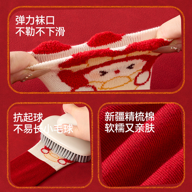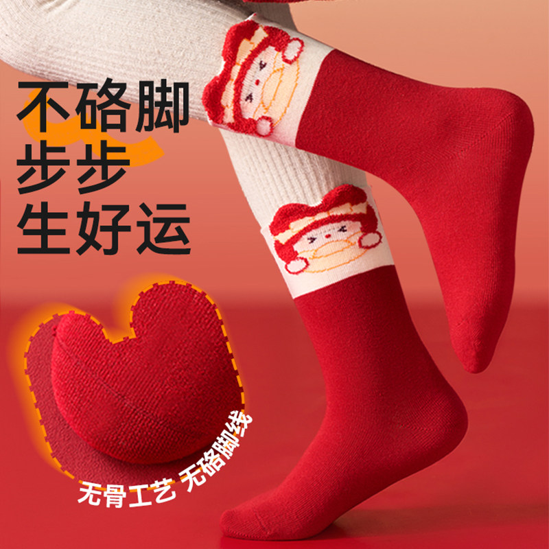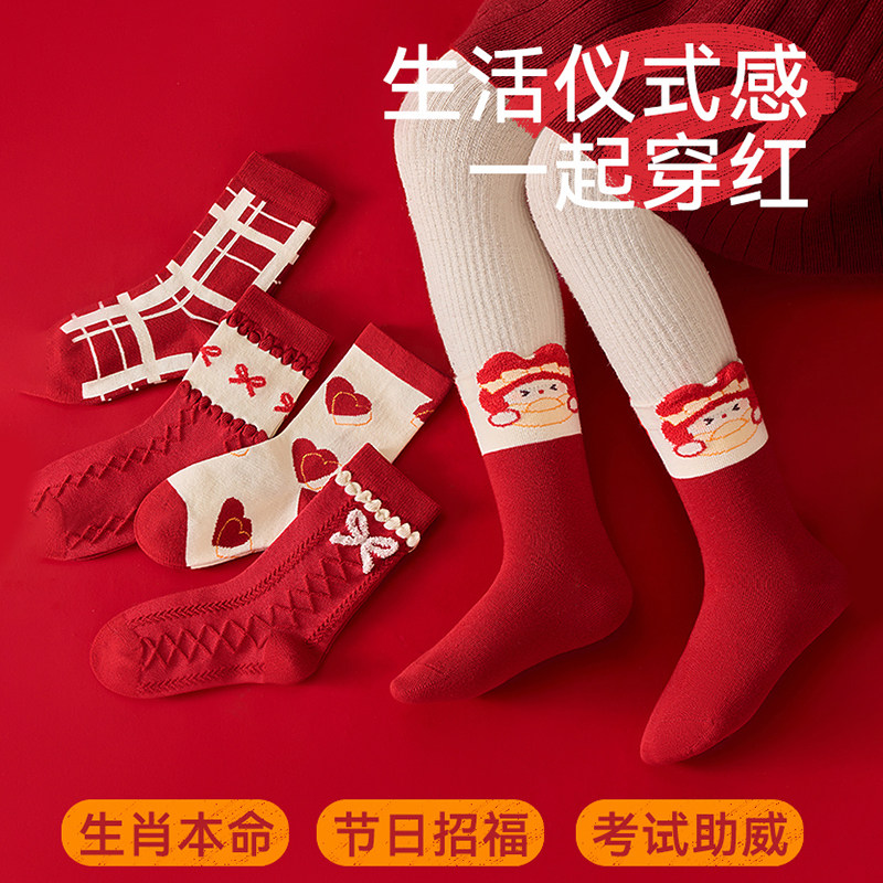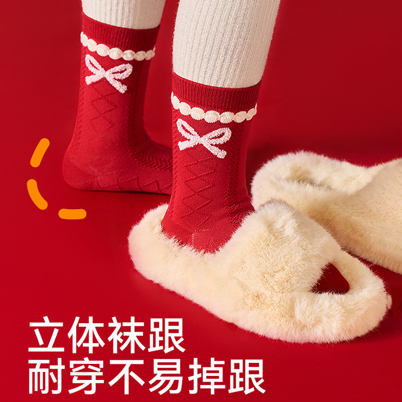 女童袜子棉质本命年红色棉袜女孩马年新年大红袜冬款中筒加厚童袜