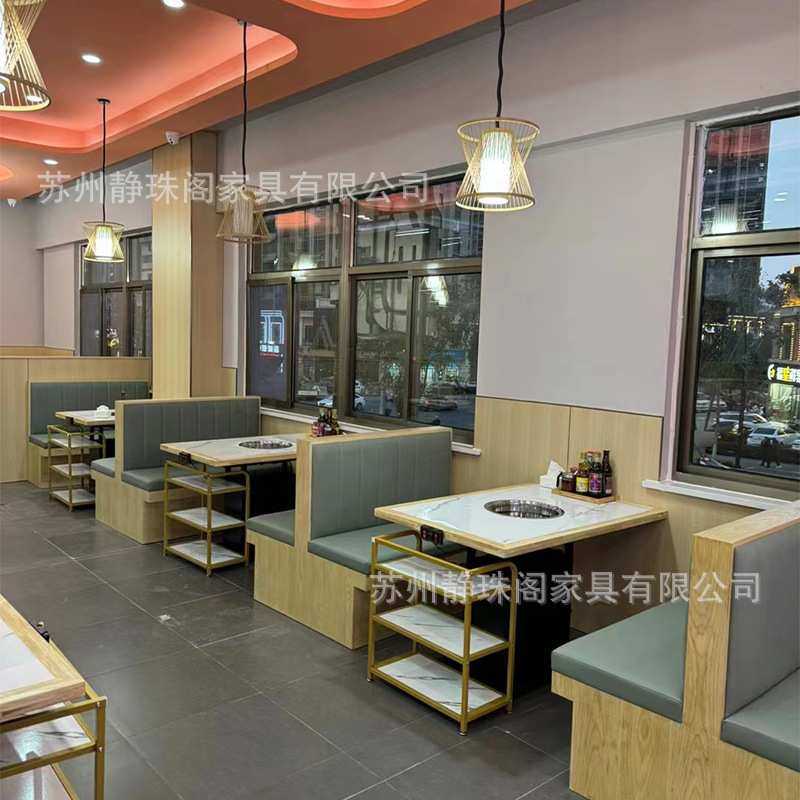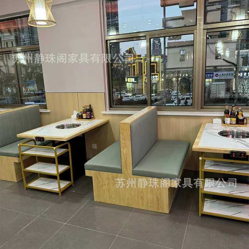 实木岩板火锅烤肉桌椅小吃店烧烤卡座沙发组合商用实木家具