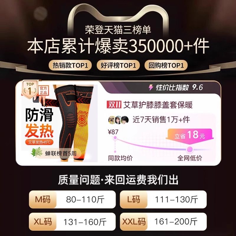 艾草护膝盖保暖老寒腿男女士关节发热老人护腿长筒套加厚防寒专用