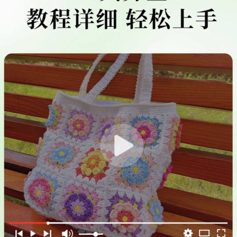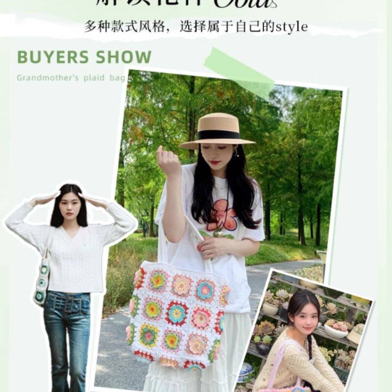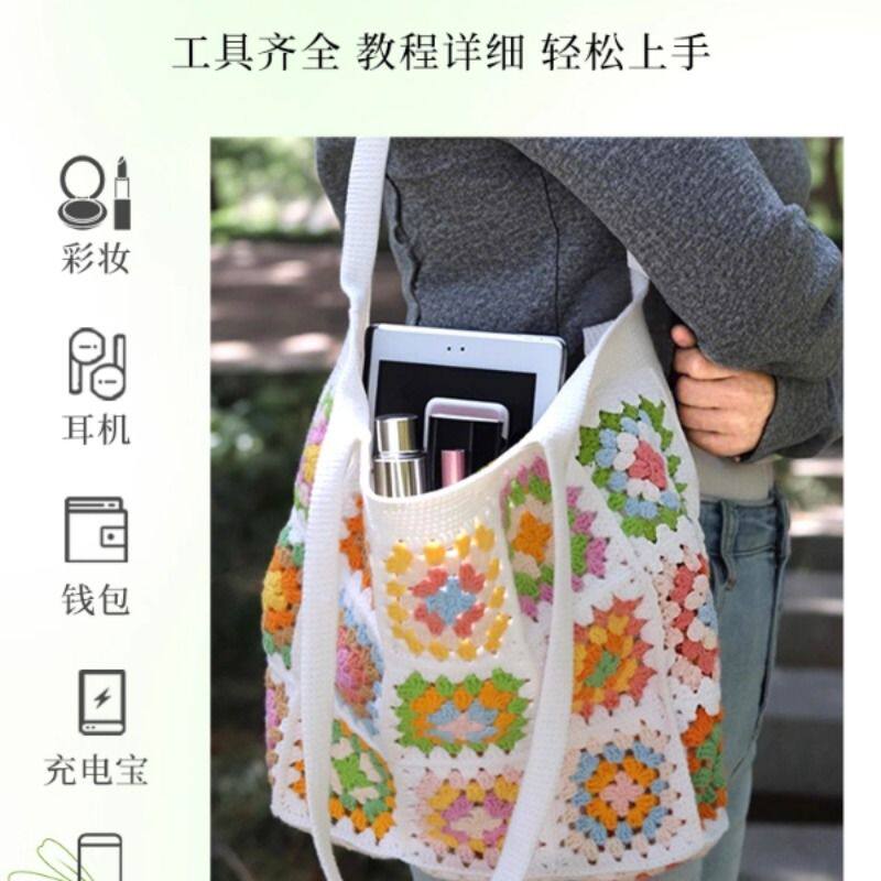 祖母格编织包毛线手工diy钩织材料包钩针钩花复古山茶花单肩礼物