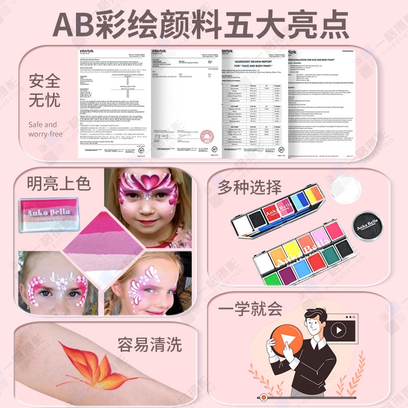 Anka Bella 欧美儿童面部彩绘人体彩绘水性彩-12色单色盘120克