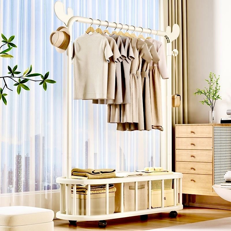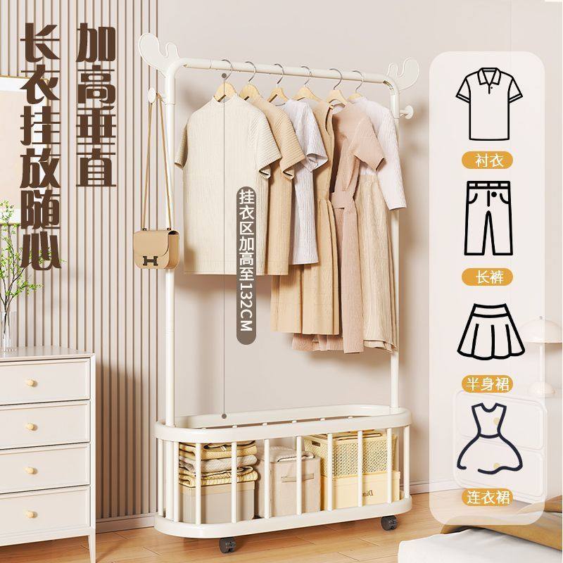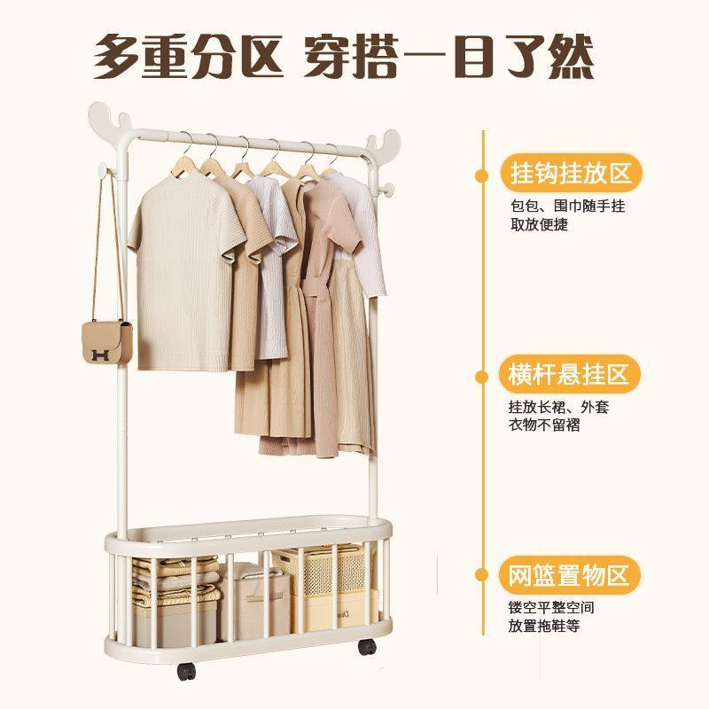 衣架落地卧室奶油风挂衣架家用铁艺简易晾衣架室内客厅移动衣帽架