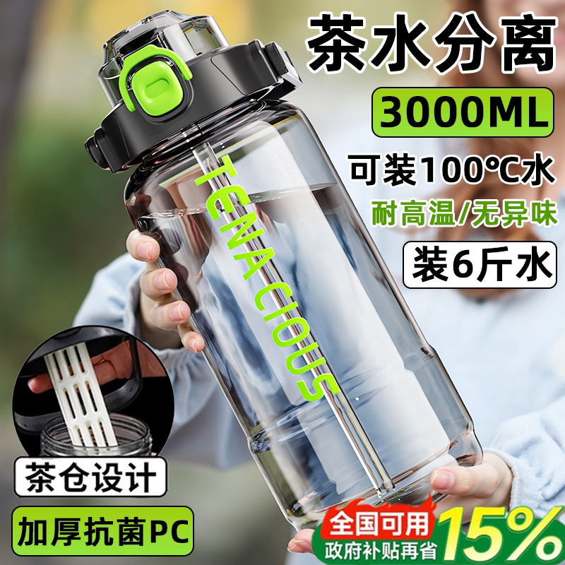 3000ml茶水分离水杯大号大容量水壶户外便携饮水杯水瓶泡茶男士ae