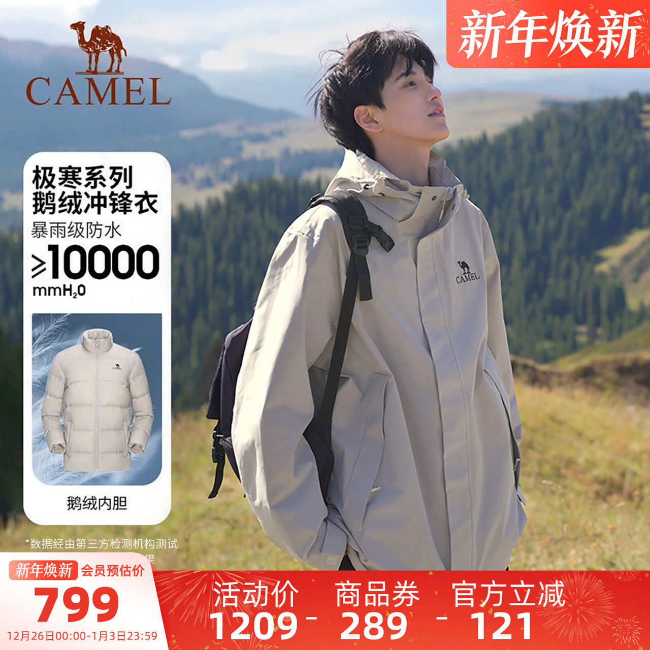 骆驼户外冲锋衣女款25年三合一鹅绒内胆三防保暖羽绒登山服外套男