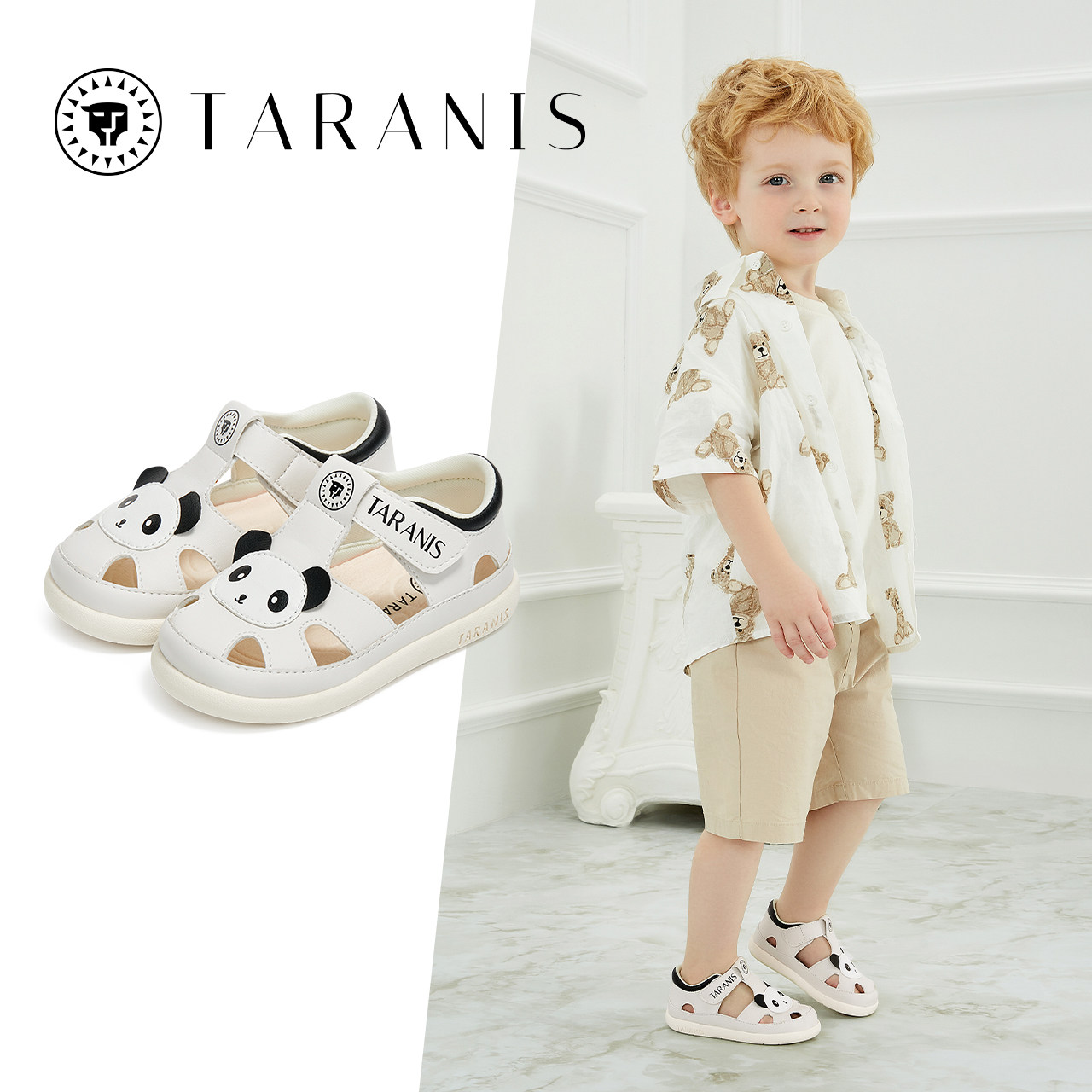 泰兰尼斯夏季童鞋包头防踢男童熊猫凉鞋软底镂空女宝宝机能学步鞋