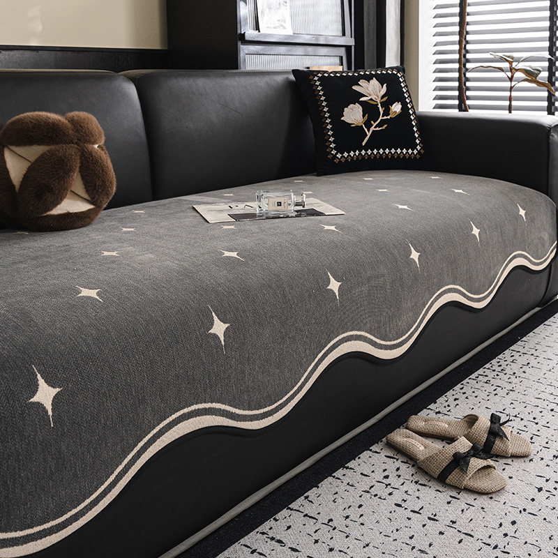 雪尼尔沙发垫四季通用可拆洗防滑防猫抓简约现代三座一贵妃沙发套