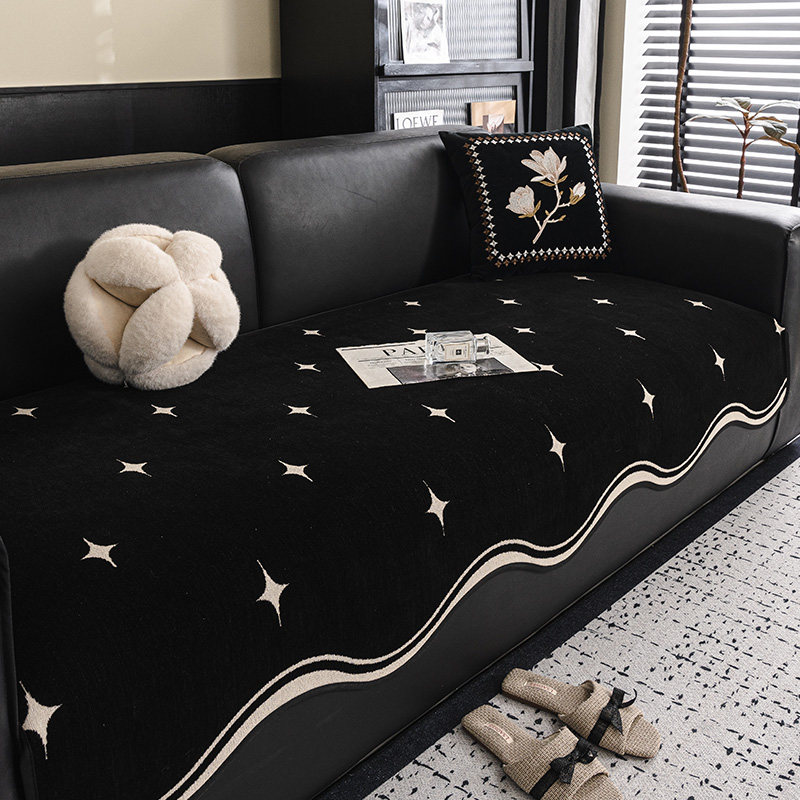 雪尼尔异形沙发垫四季通用新款简约防滑长条皮沙发套罩坐垫盖布巾