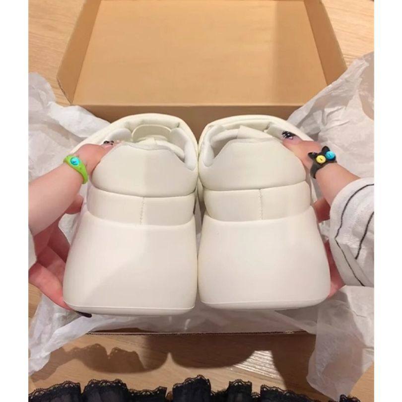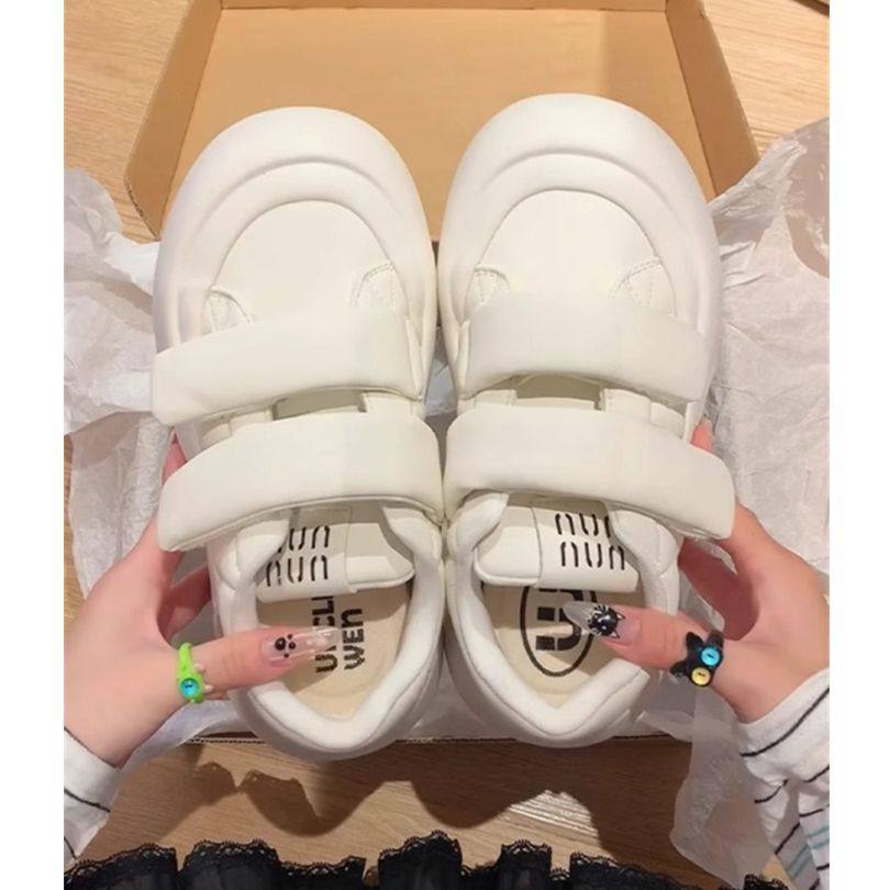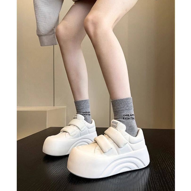 白色运动鞋女秋冬季魔术贴小白鞋丑萌大头板鞋增高厚底面包鞋圆头