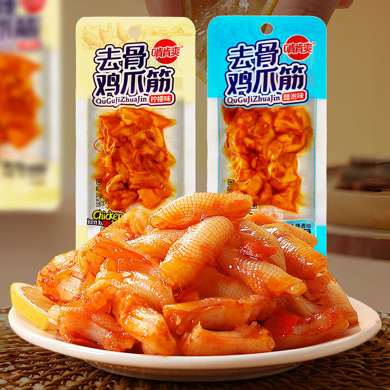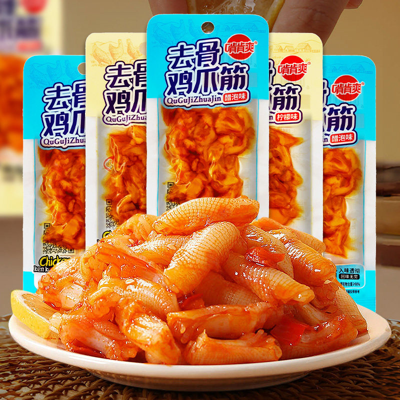 鸡爪筋酸辣无骨柠檬去骨鸡脚筋即食小吃网红追剧解馋零食
