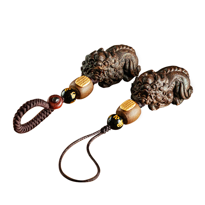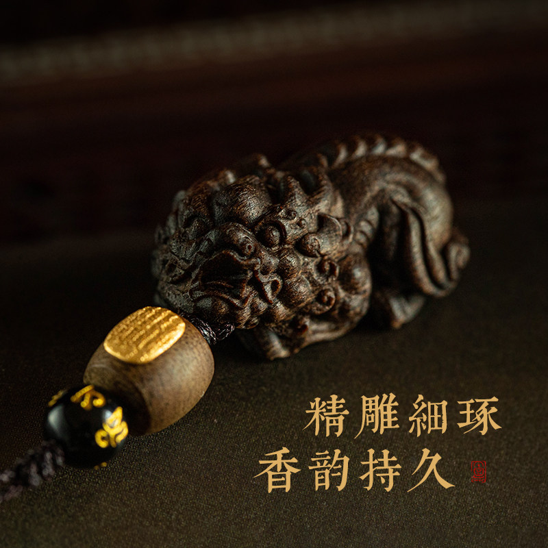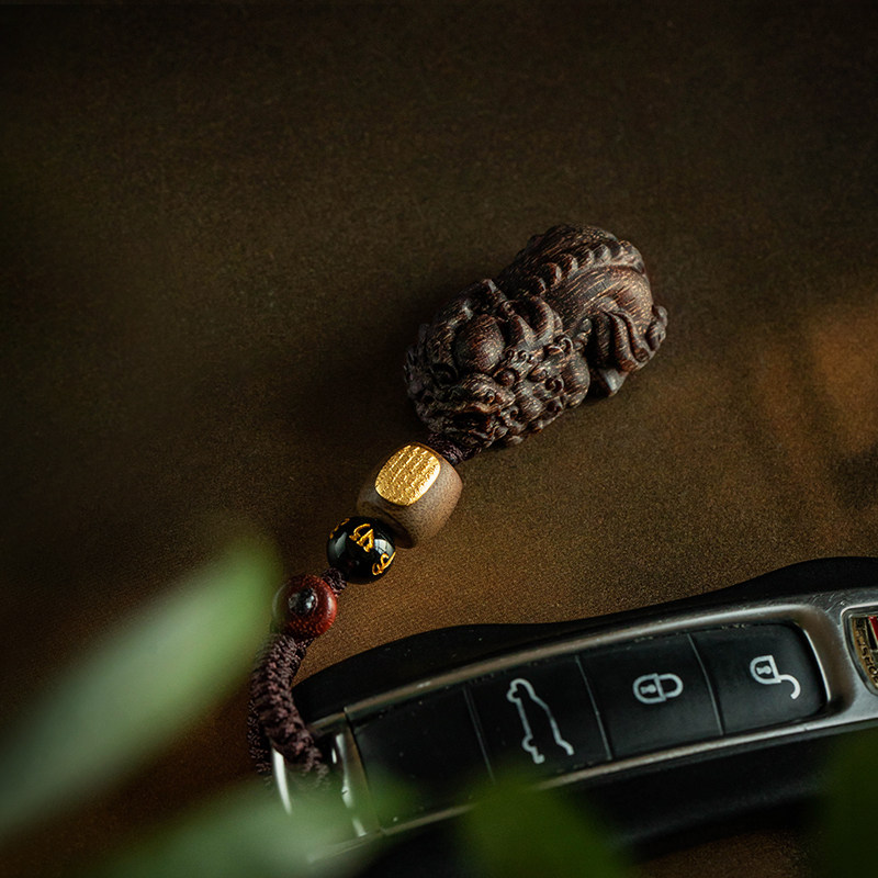 老料沉香木貔貅汽车钥匙扣本命年复古手机链挂件聚财男女车挂礼物