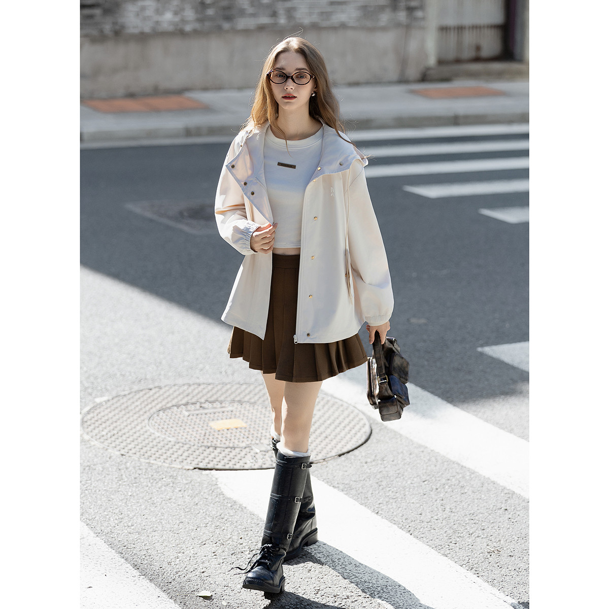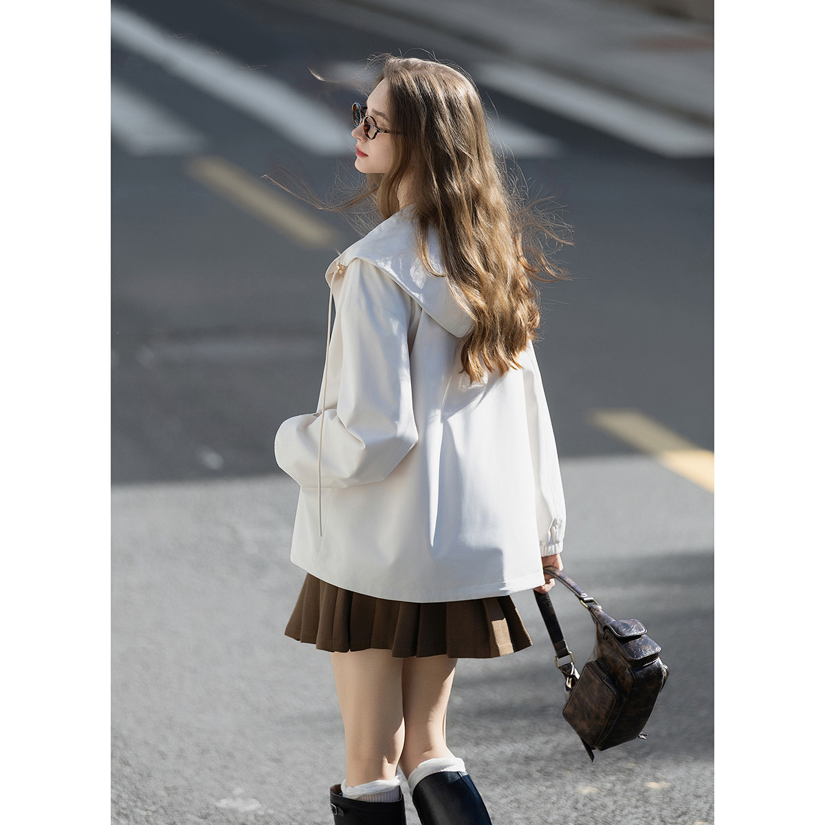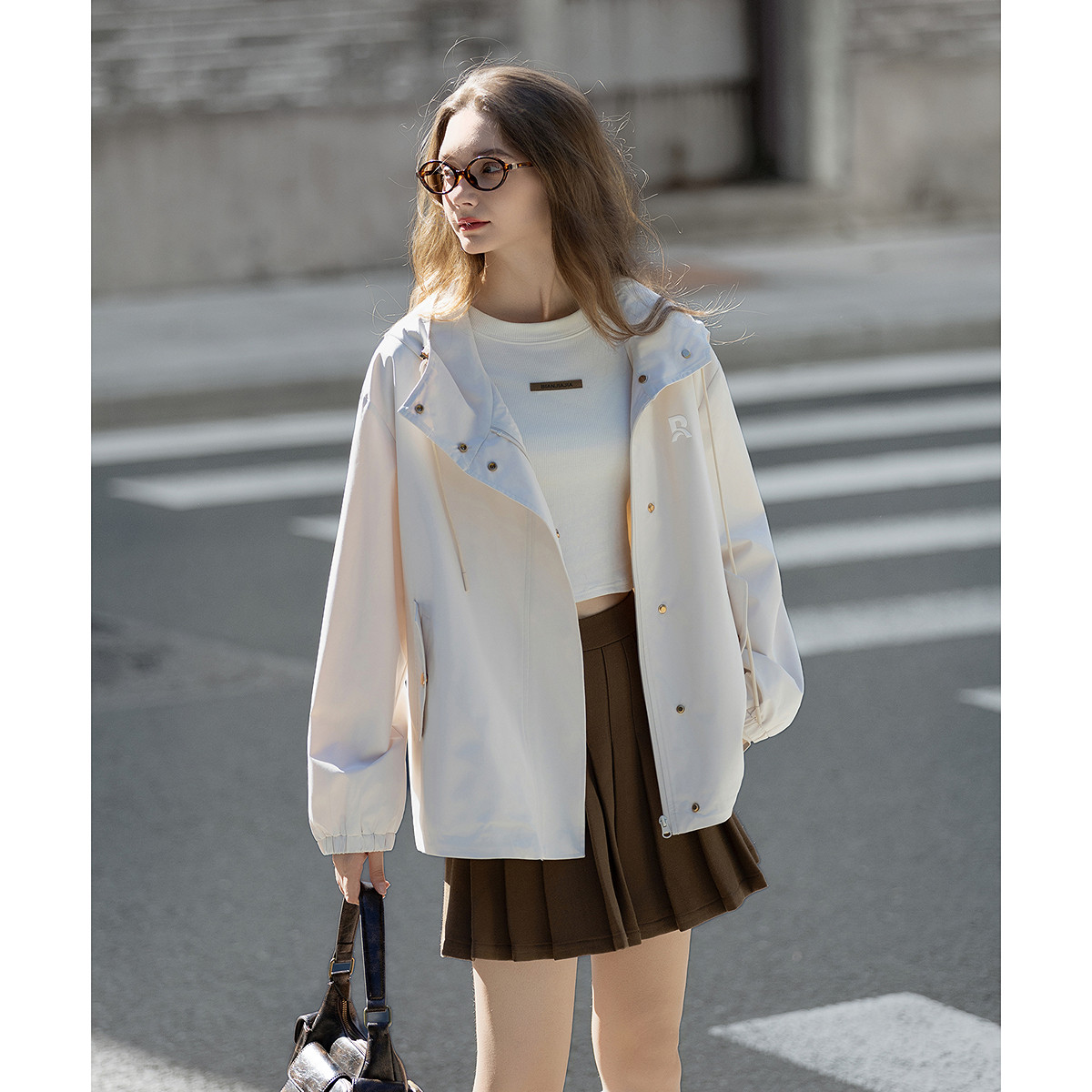 唐狮春秋短款外套女连帽休闲风宽松时尚洋气米白今年流行爆款TUTA
