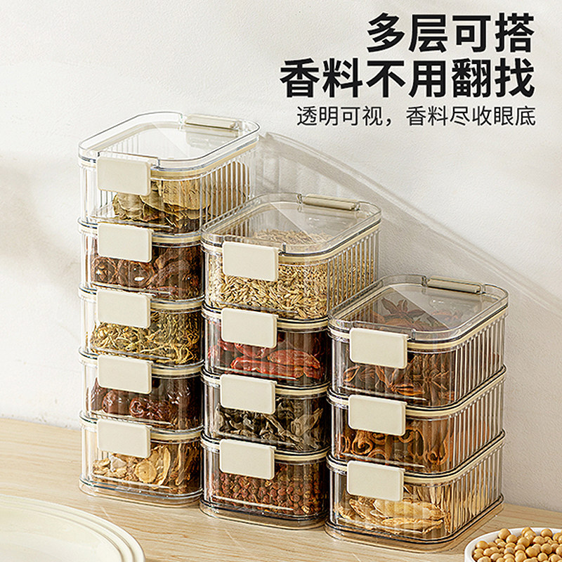 香料收纳盒食品级厨房家用花椒大料佐料分格储物盒密封罐调味品罐