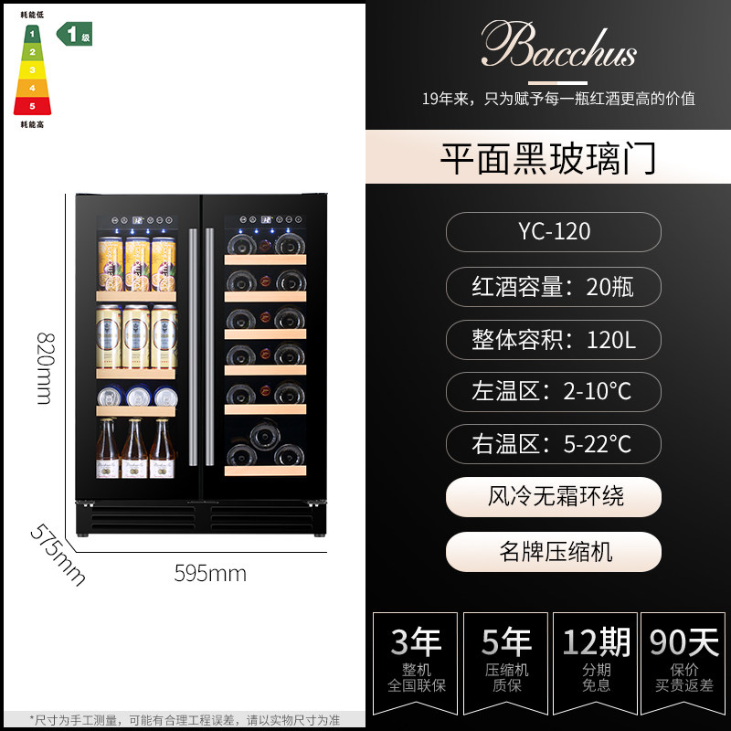芭克斯YC-120恒温红酒柜家用客厅双温风冷冰吧饮料嵌入式双门对开