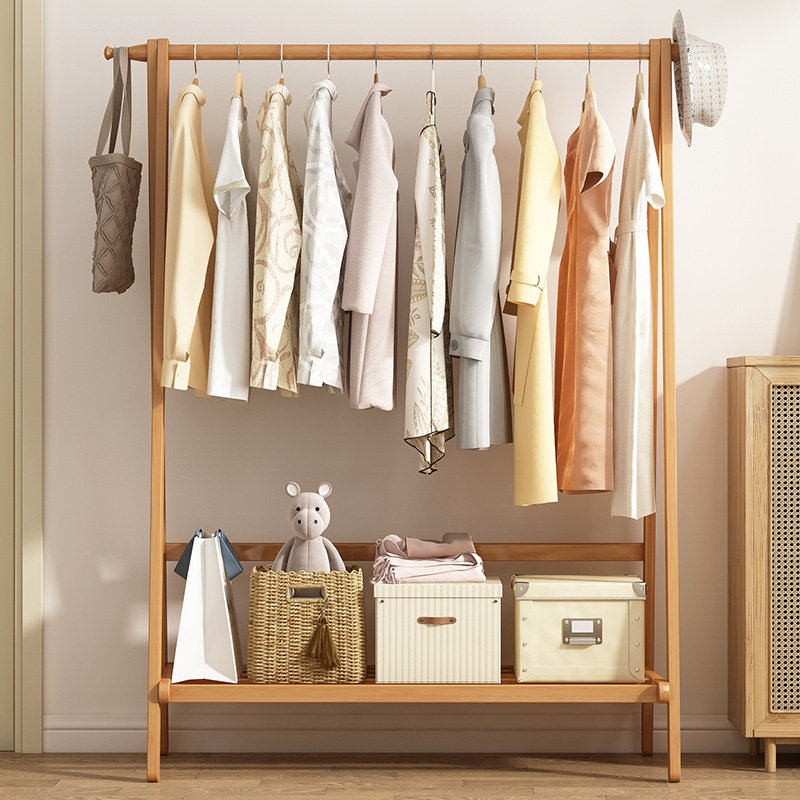 衣帽架落地挂衣架卧室实木晾衣服架子挂衣杆双层家居置物楠竹收纳