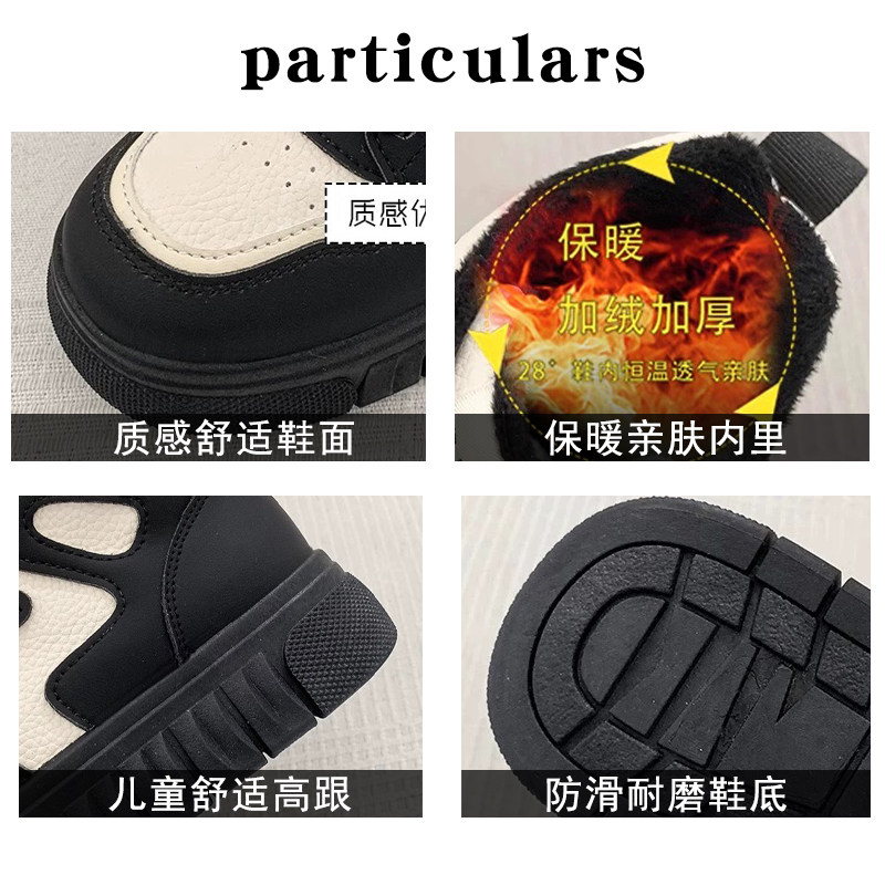 特步儿童新款冬季皮面防滑板鞋运动鞋加绒二棉棉鞋子中大童男童鞋