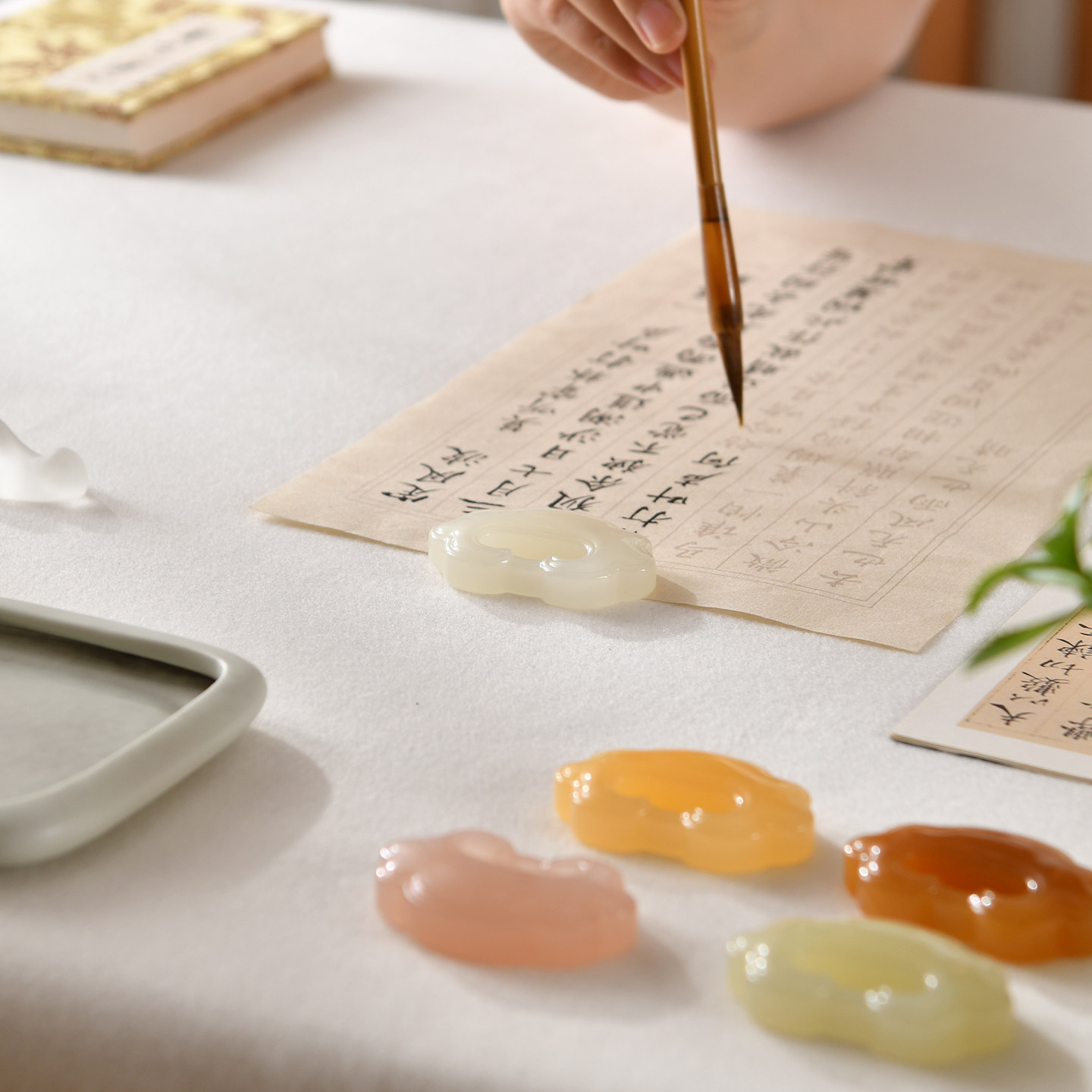 赵北玉石镇尺书法专用毛笔字镇纸天然原石岫玉书画压纸器文房四宝高颜值创意摆件高端礼品阿富汗玉书法镇尺