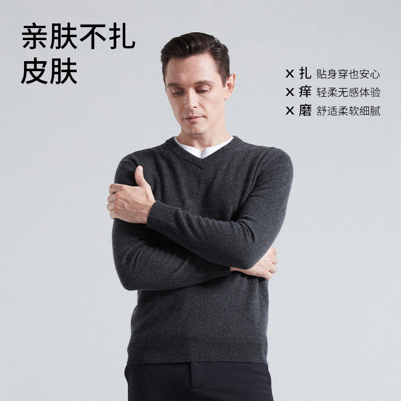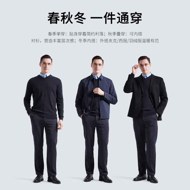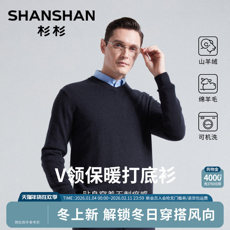 杉杉毛衣男士新款冬季山羊绒加厚内搭V领爸爸保暖羊毛针织打底衫