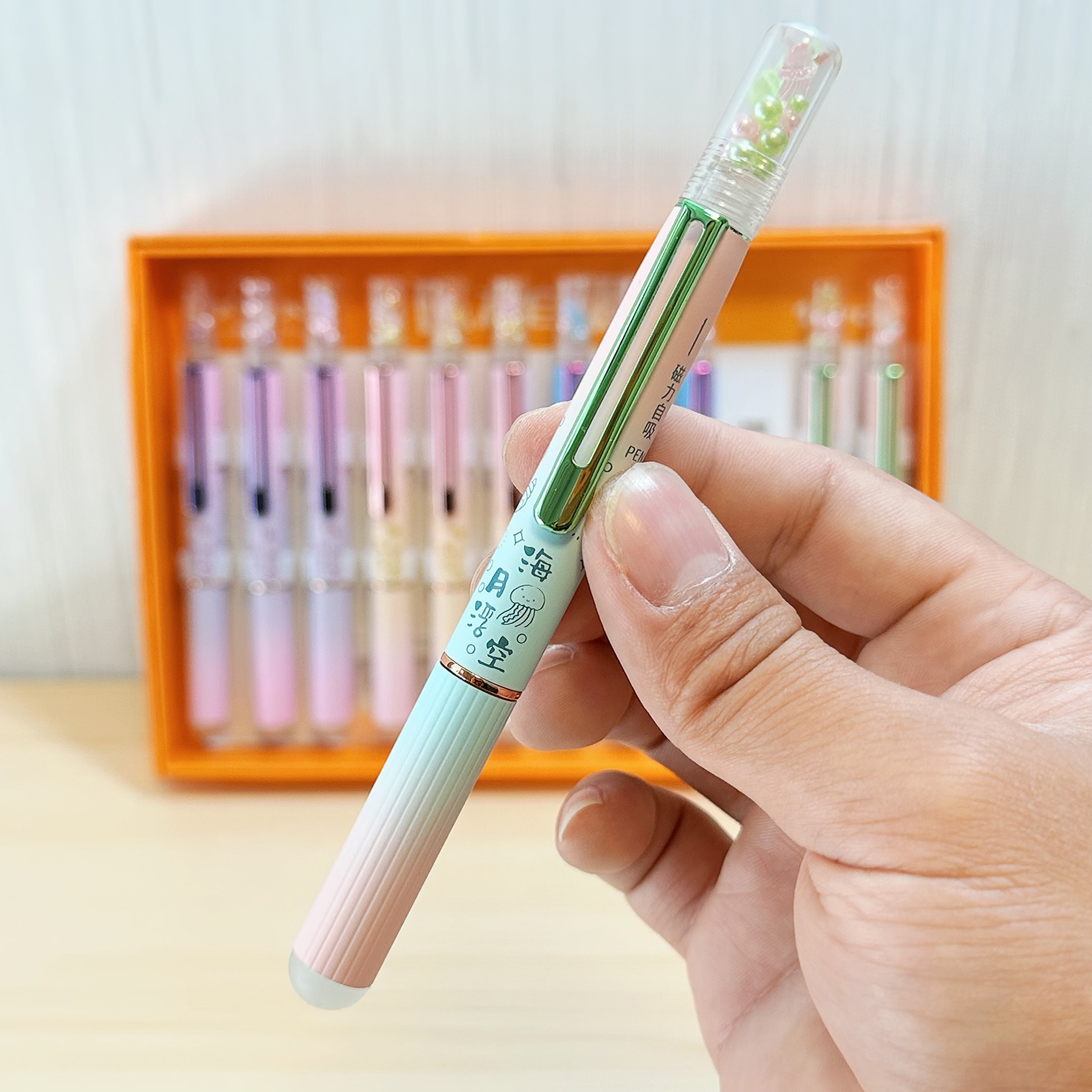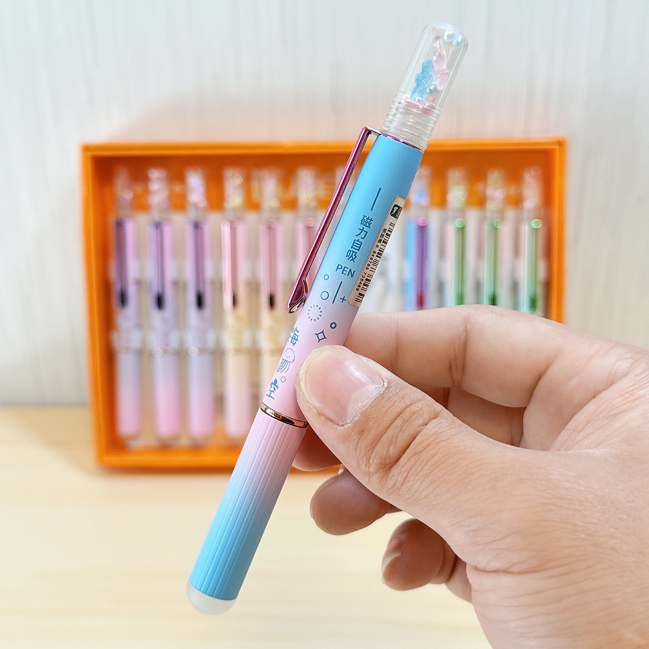 罗氏5660M珍珠水母磁吸钢笔小学生正姿练字热敏可擦小尖钢笔刻字