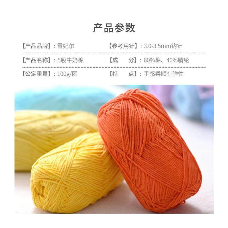 雪妃尔5股牛奶棉手工diy编织钩针围巾帽子精梳棉线宝宝毛线团毛衣