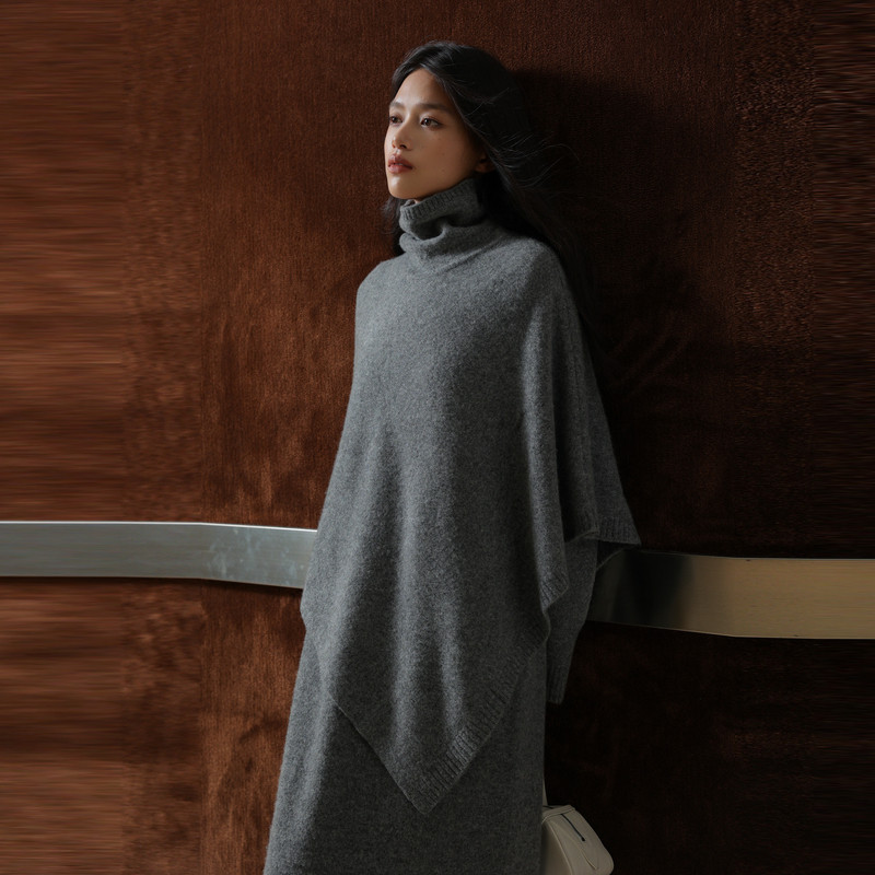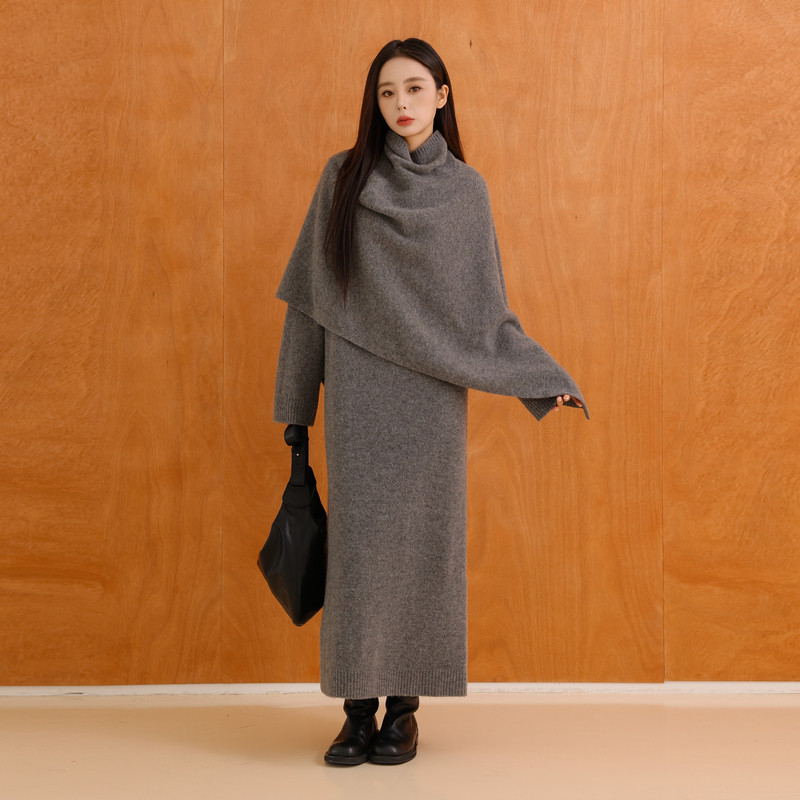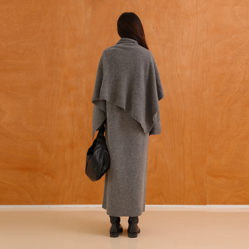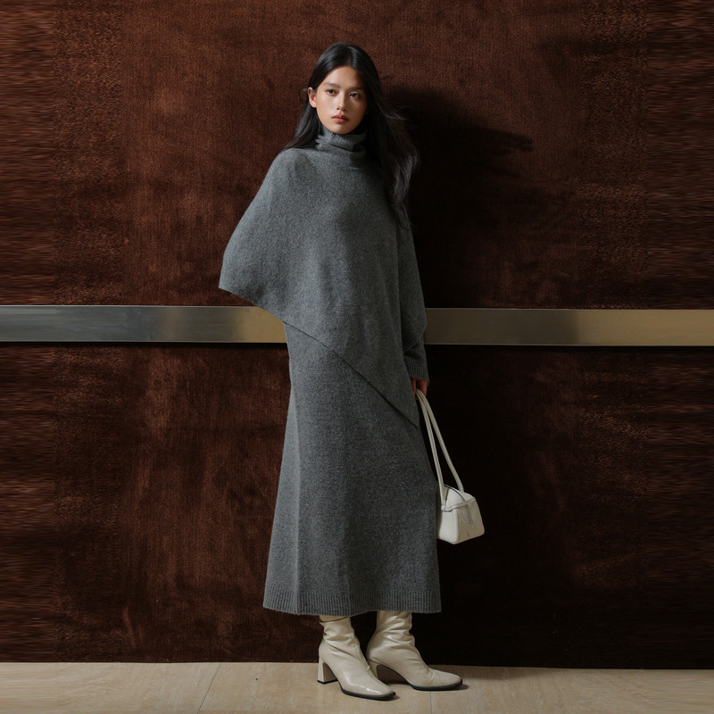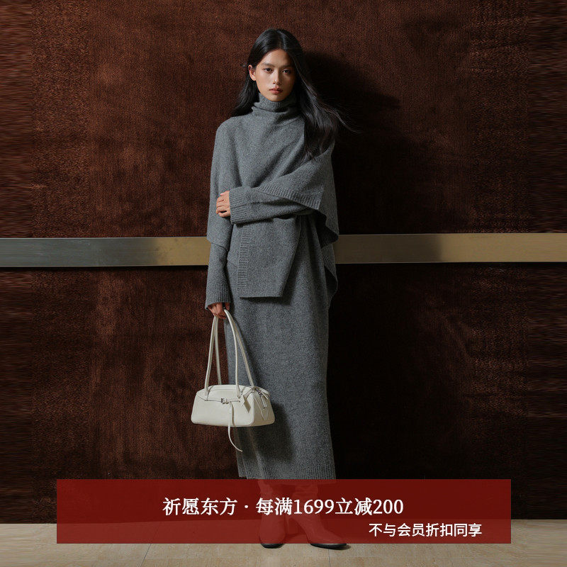 黑标BAIZHUO商场同款25冬季新款连衣裙+披肩全羊毛套装AZ54TZ207