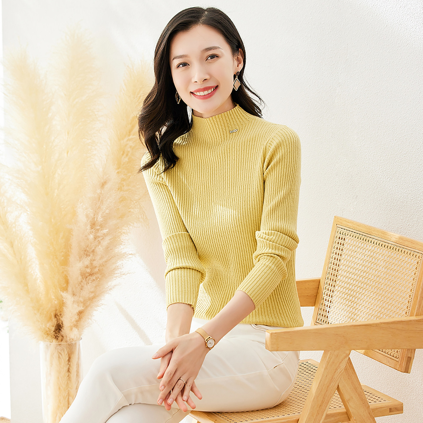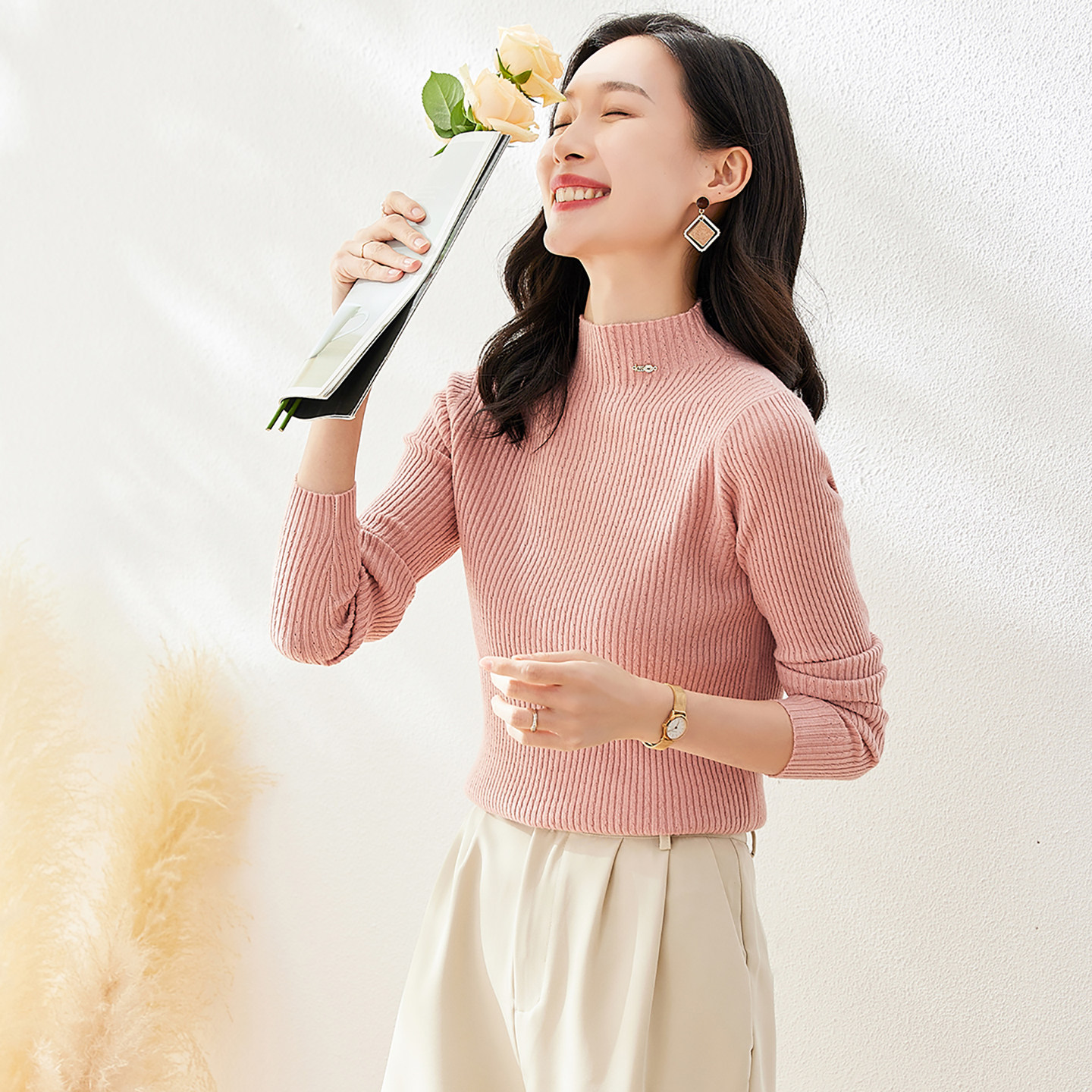 一线成衣无缝女半高领套头打底衫秋冬内搭毛衣修身长袖羊毛针织衫