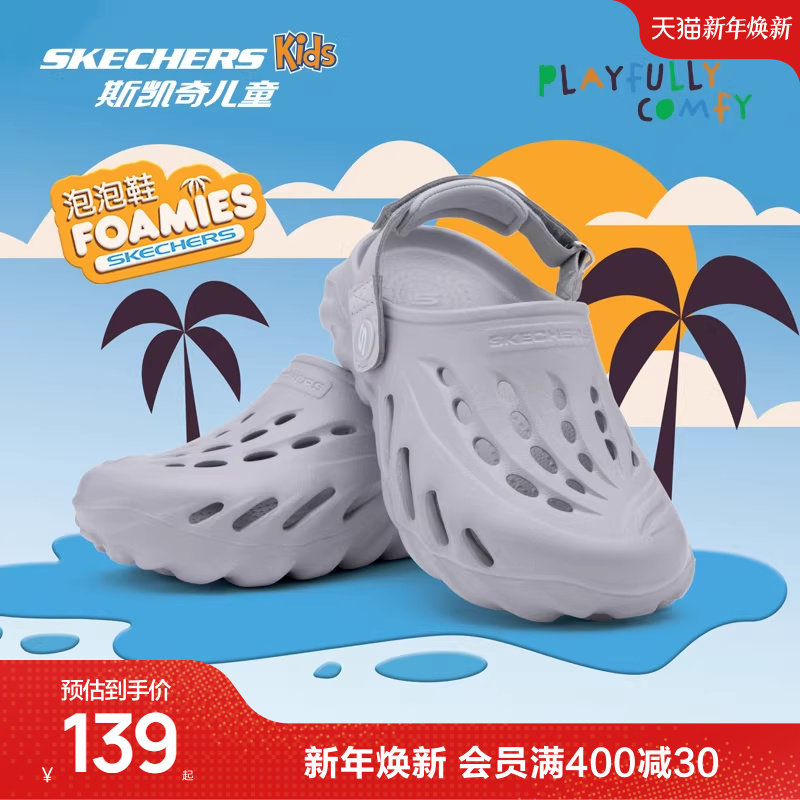 skechers斯凯奇儿童泡泡鞋男童疏水轻便沙滩洞洞鞋夏季中大童凉鞋