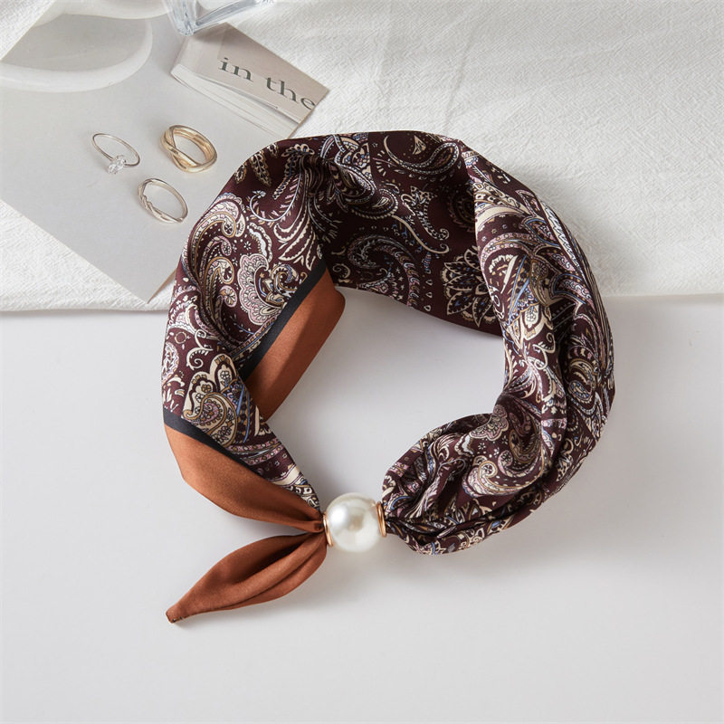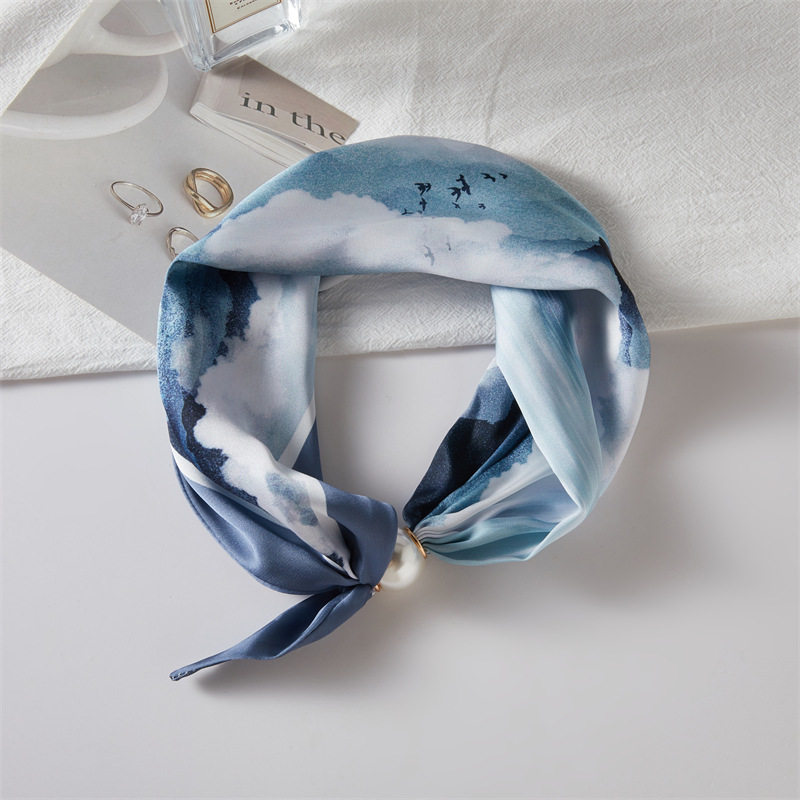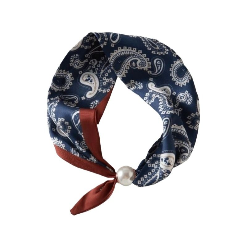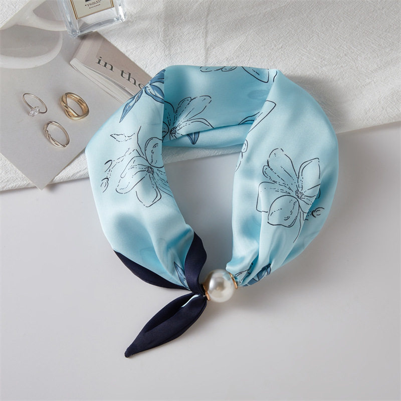法式轻奢春夏季小方巾珍珠项链磁吸扣丝巾女围脖锁骨链围巾波点