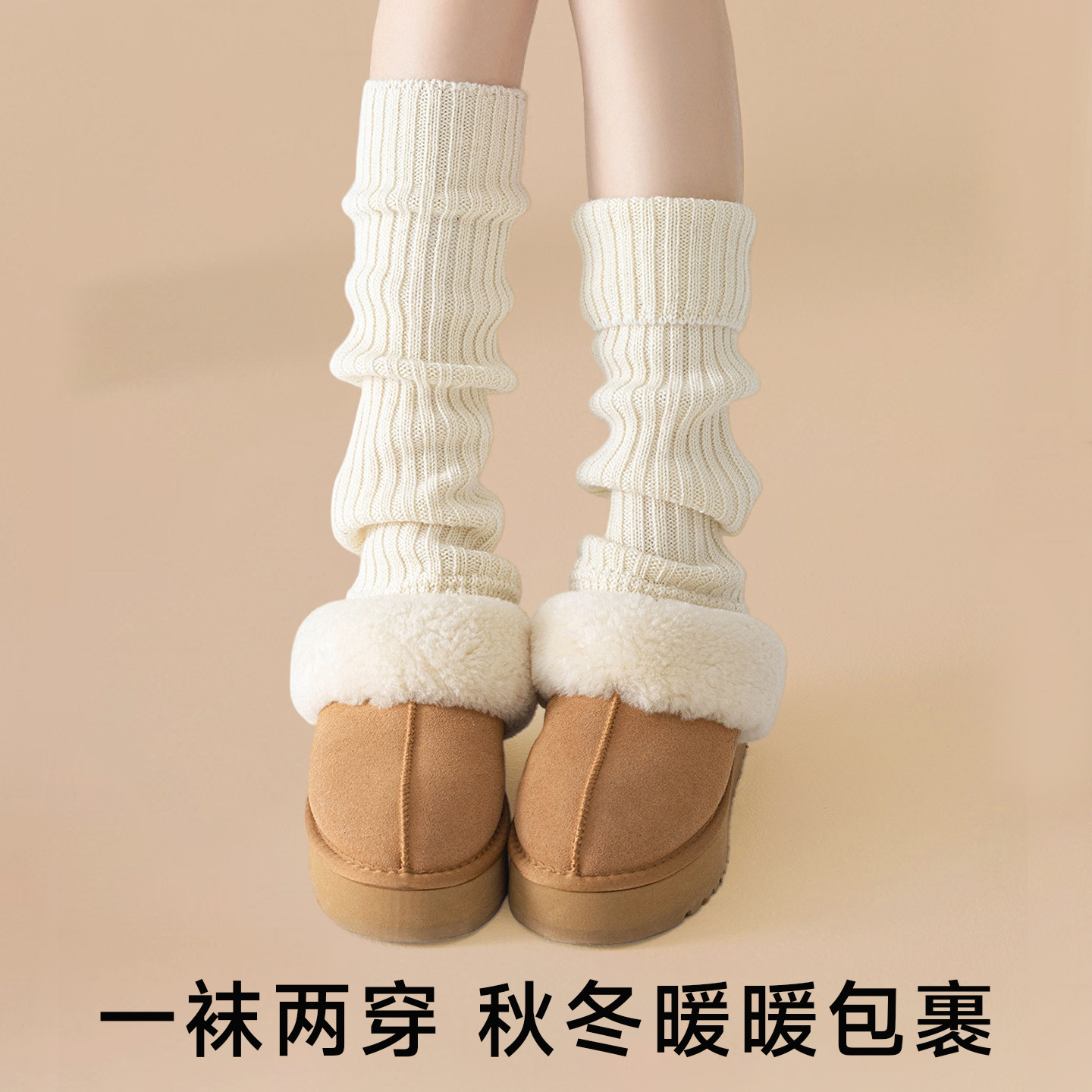 米色袜套堆堆袜100%纯羊毛女秋冬加厚搭配雪地靴小腿套长筒袜子