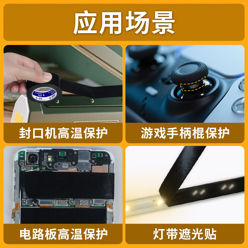 黑色铁氟龙耐高温胶布防烫防火绝缘隔热阻燃特氟龙胶带260度耐磨耐酸碱高温封口真空包装机特氟龙遮光薄膜