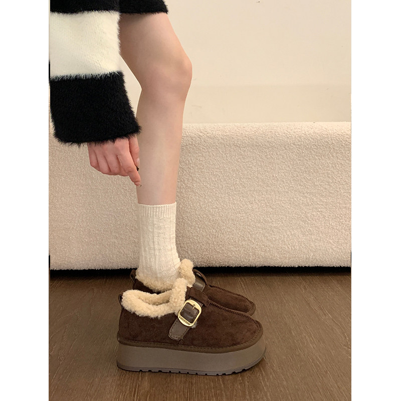 TATAFOCUS~加绒毛毛鞋韩版圆头皮带扣2025冬季新款勃肯鞋女35-28