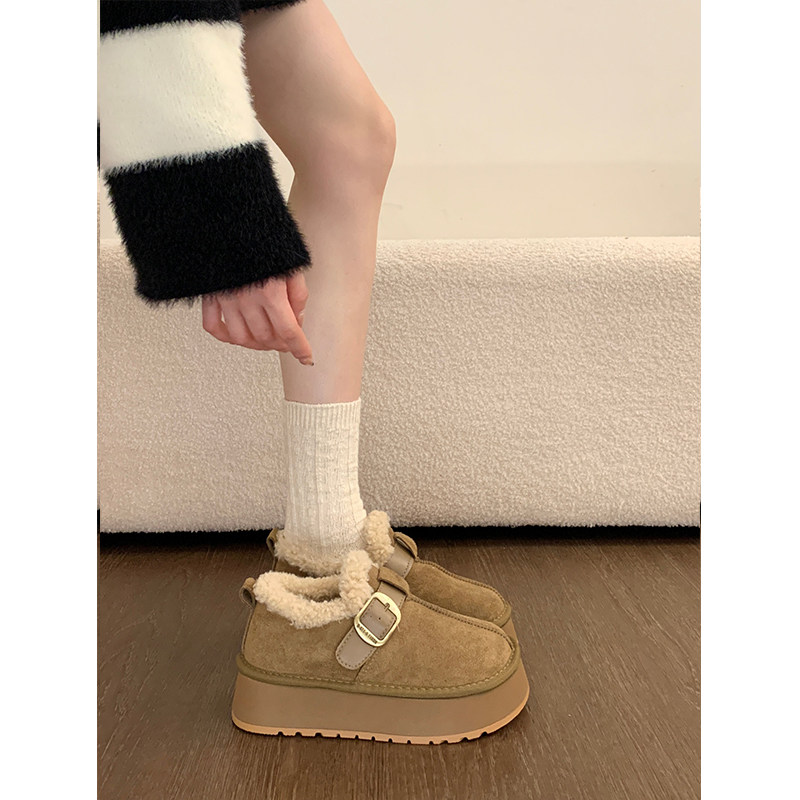 星期六内增高勃肯鞋女加绒保暖2025冬季新款皮带扣防滑东北大棉鞋