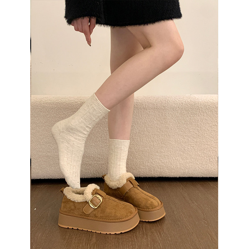 厚底加绒加厚勃肯鞋女2025新款冬季一脚蹬雪地靴毛毛棉鞋乐福鞋子