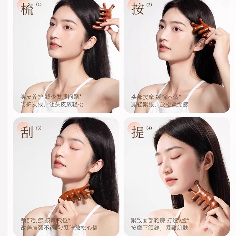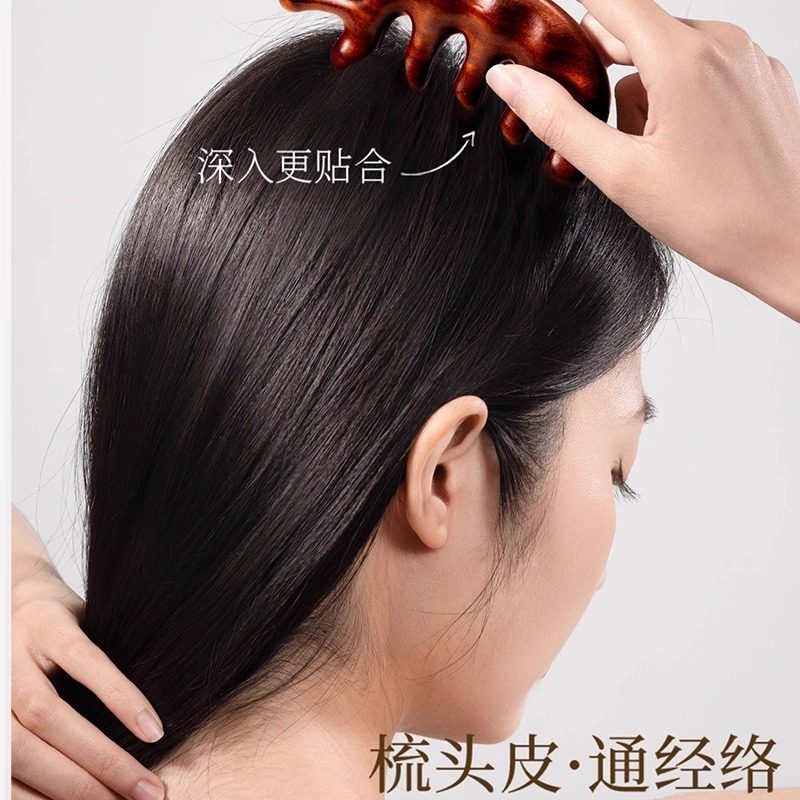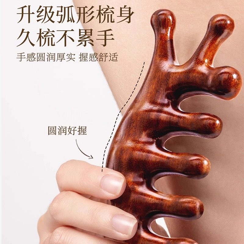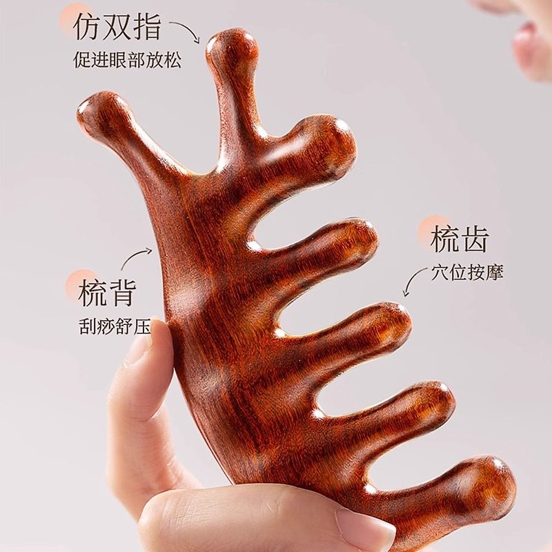 按摩梳檀木经络防静电穴位头部按摩通用五指按摩梳子头颈刮痧神器
