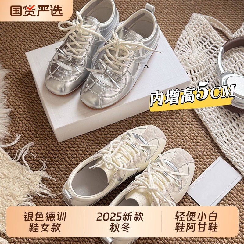 银色德训鞋女款2025新款秋冬爆款休闲运动板鞋小白鞋阿甘鞋子平底