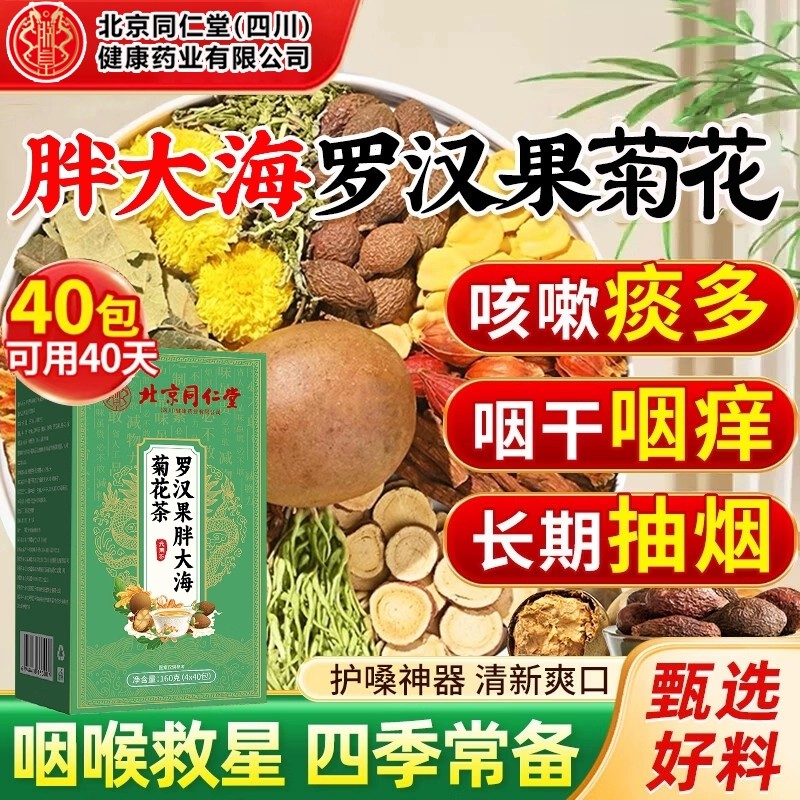 同仁堂胖大海罗汉果咽炎茶清肺化痰止咳润喉茶正品官方旗舰店菊花