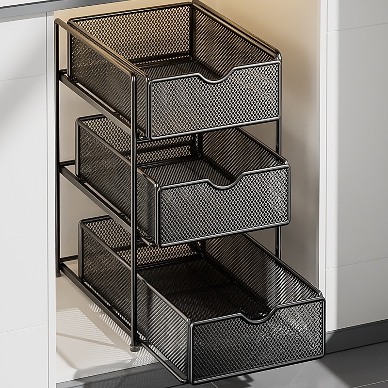 厨房抽拉式置物架下水槽双层橱柜内分层架子拉篮收纳神器台面三层
