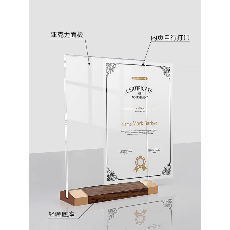 相框摆台a4专利荣誉证书聘书框架奖状展示框授权书证照裱框A5纸亚克力展示框装证书框裱专利奖状证件牌摆件