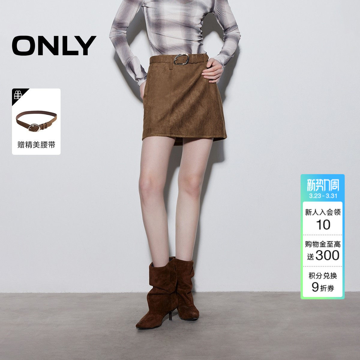 ONLY2026春季新款复古俏皮手工感锁边可调节腰带A字短裙半身裙女