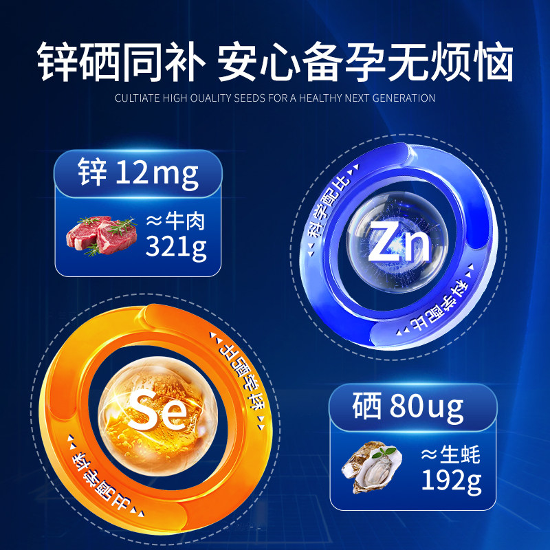 黄金搭档锌硒宝片男性备孕前吃提高精子质量活力生精调理补锌成年
