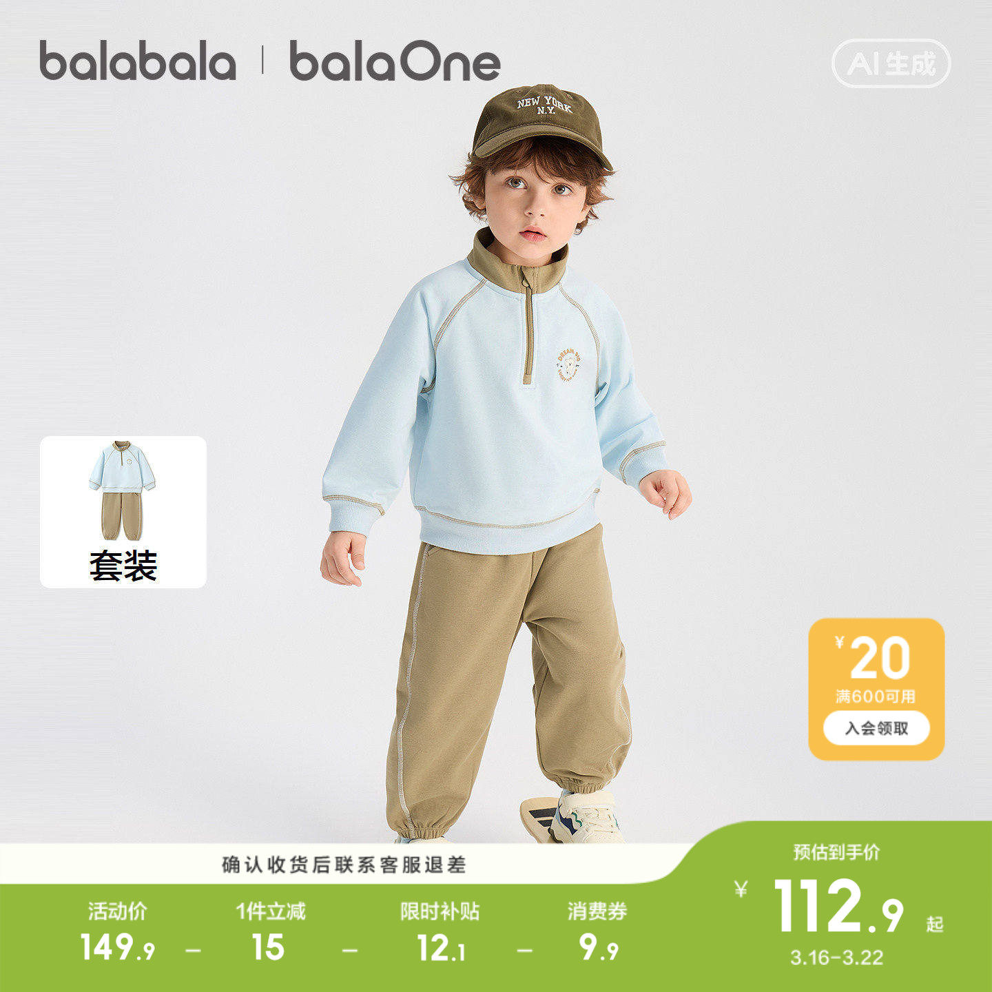 巴拉巴拉童装儿童套装女童宝宝男童两件套新款上衣2026春装舒适潮