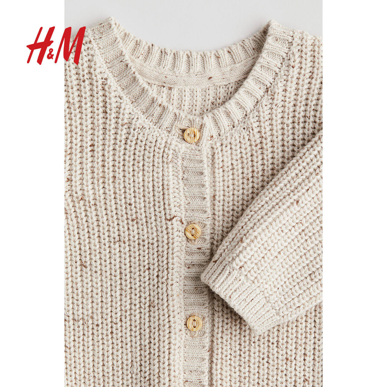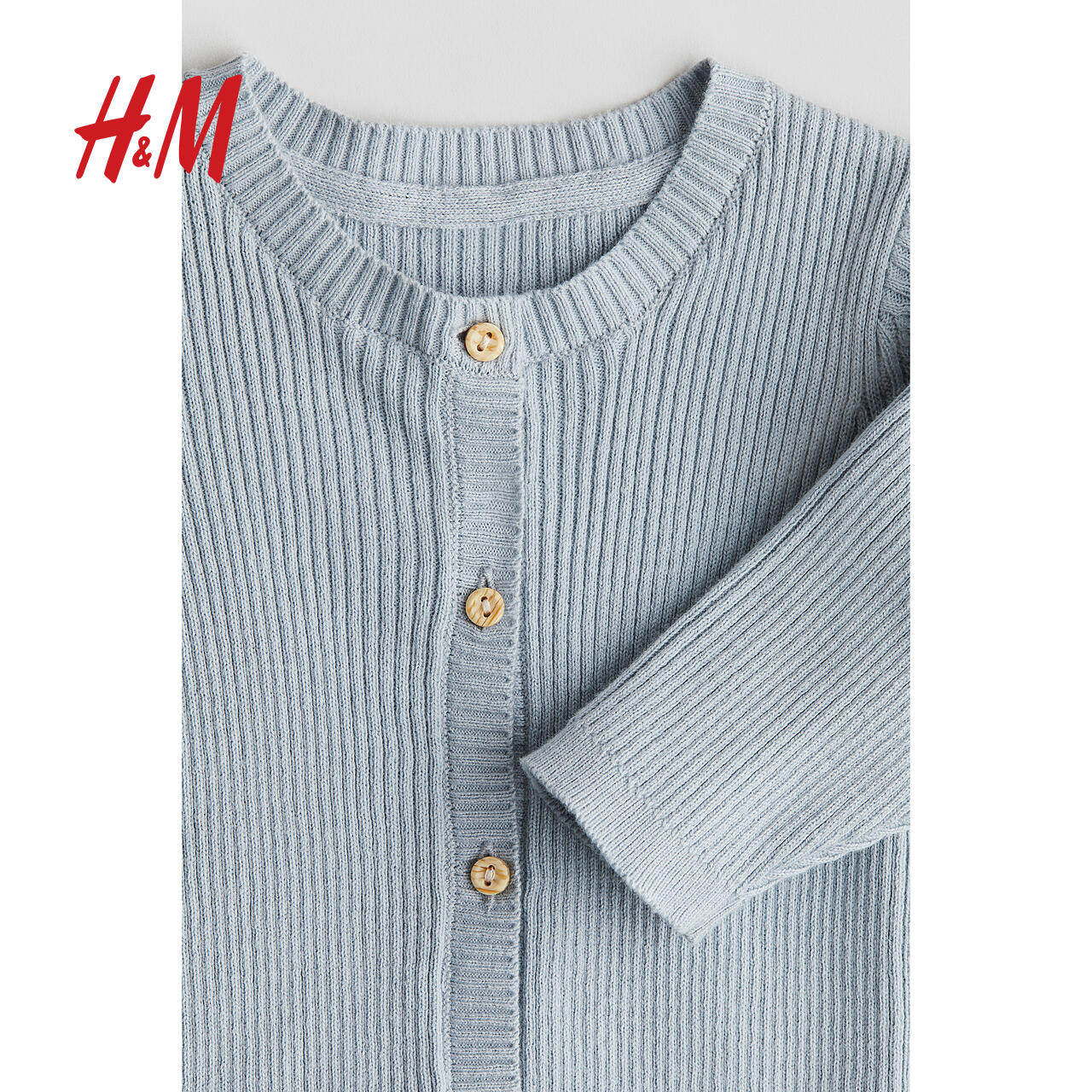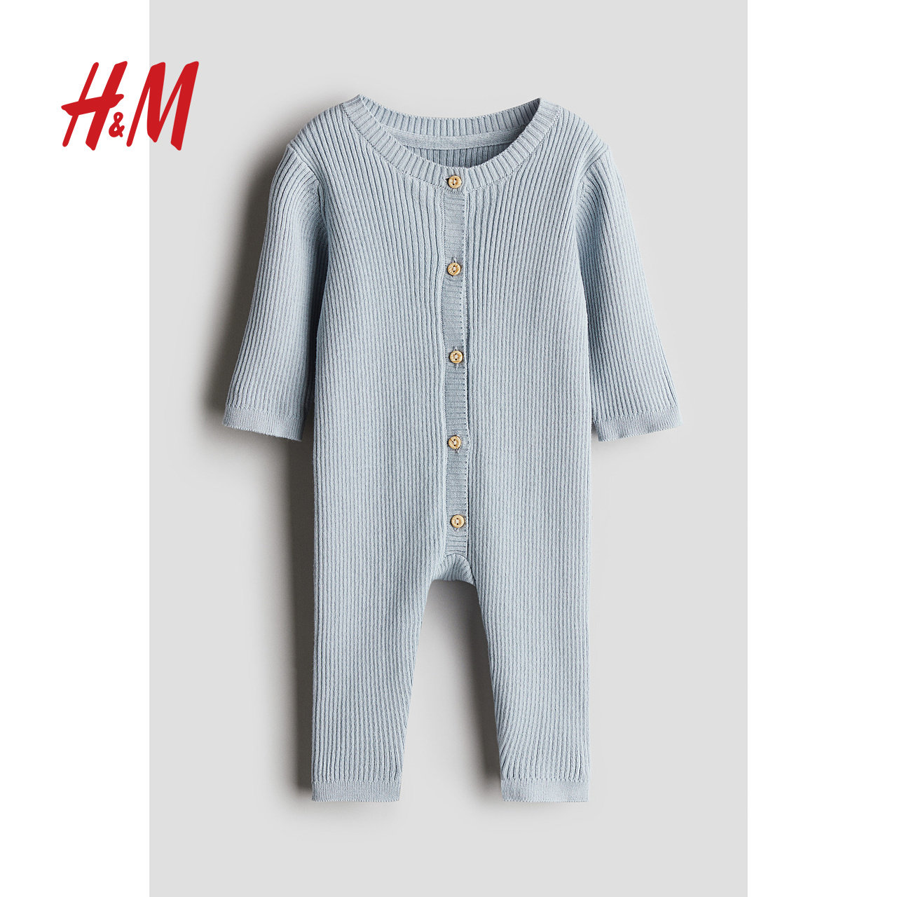 HM童装新生儿男婴女婴春季圆领长袖长裤棉质针织连体衣1270088