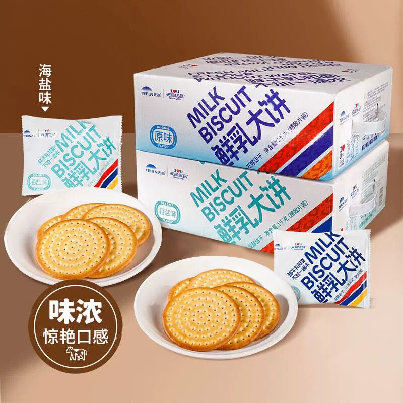 天润优品鲜乳大饼草原牛奶大饼干原味海盐味独立包装2斤整箱装