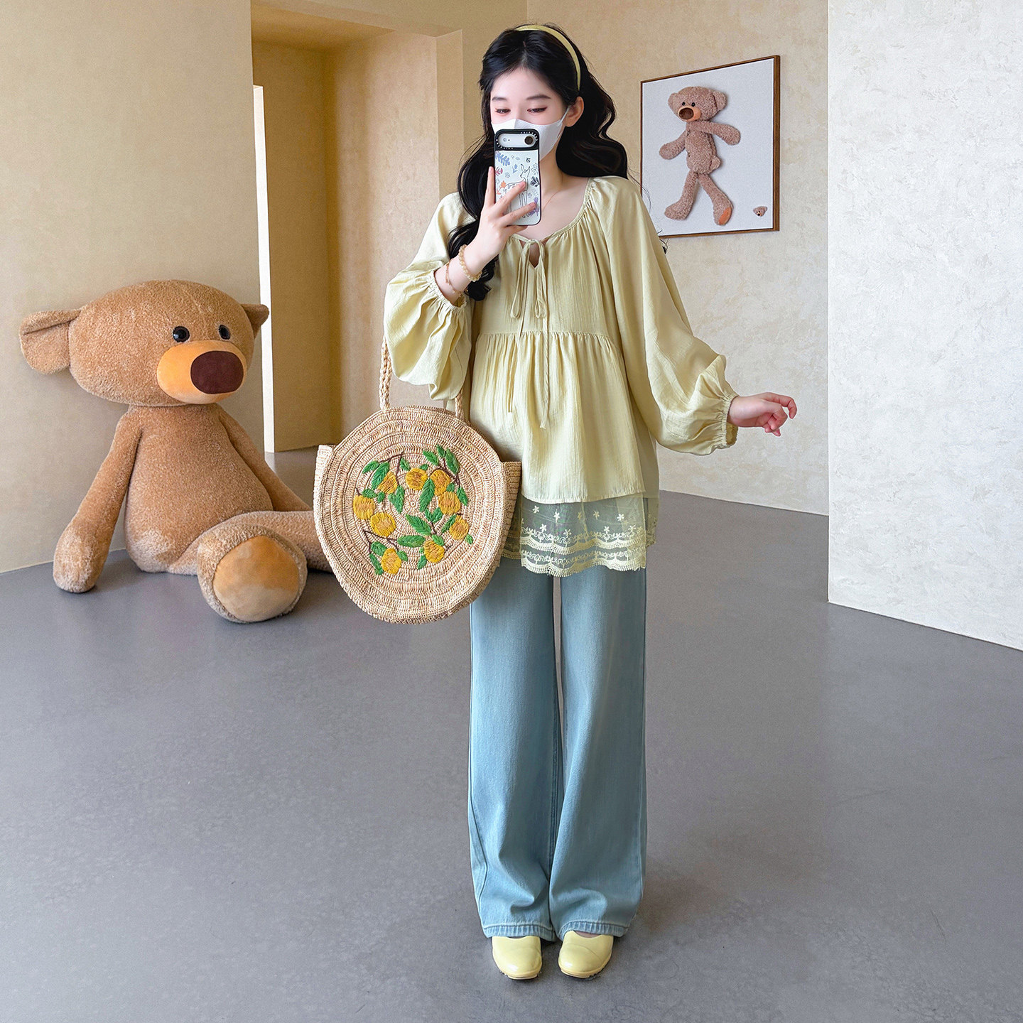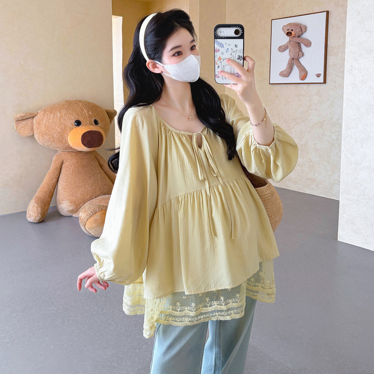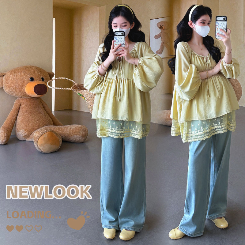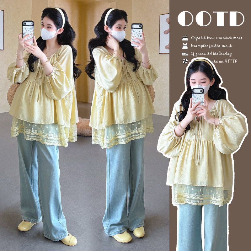 婧麒孕妇春装上衣雪纺娃娃衫时尚2026新款蕾丝宽松遮肚子不显怀夏