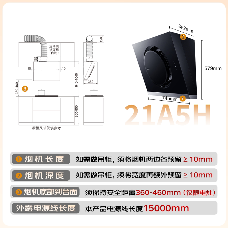 老板侧吸抽油烟机 21A5H 吸油脱排油烟机小尺寸家用侧吸烟灶套装
