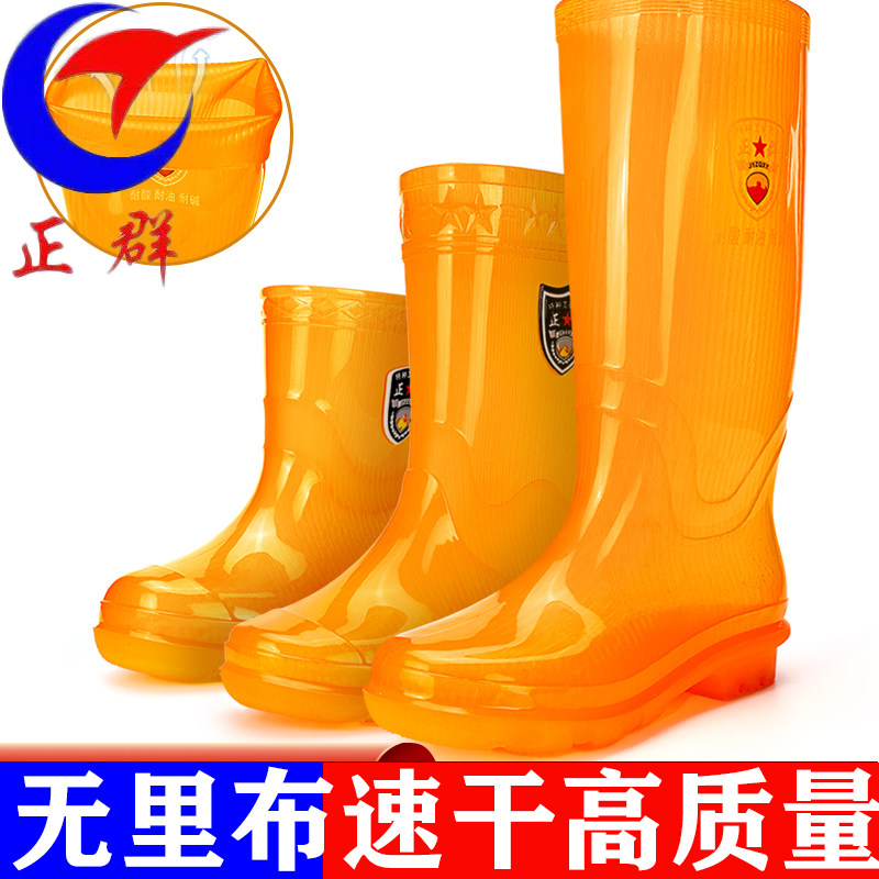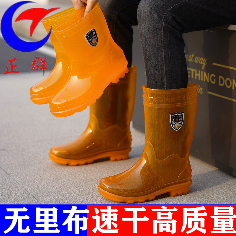 男款低筒水鞋金黄色无里布速干工地胶鞋高筒雨鞋防滑耐磨劳保雨靴