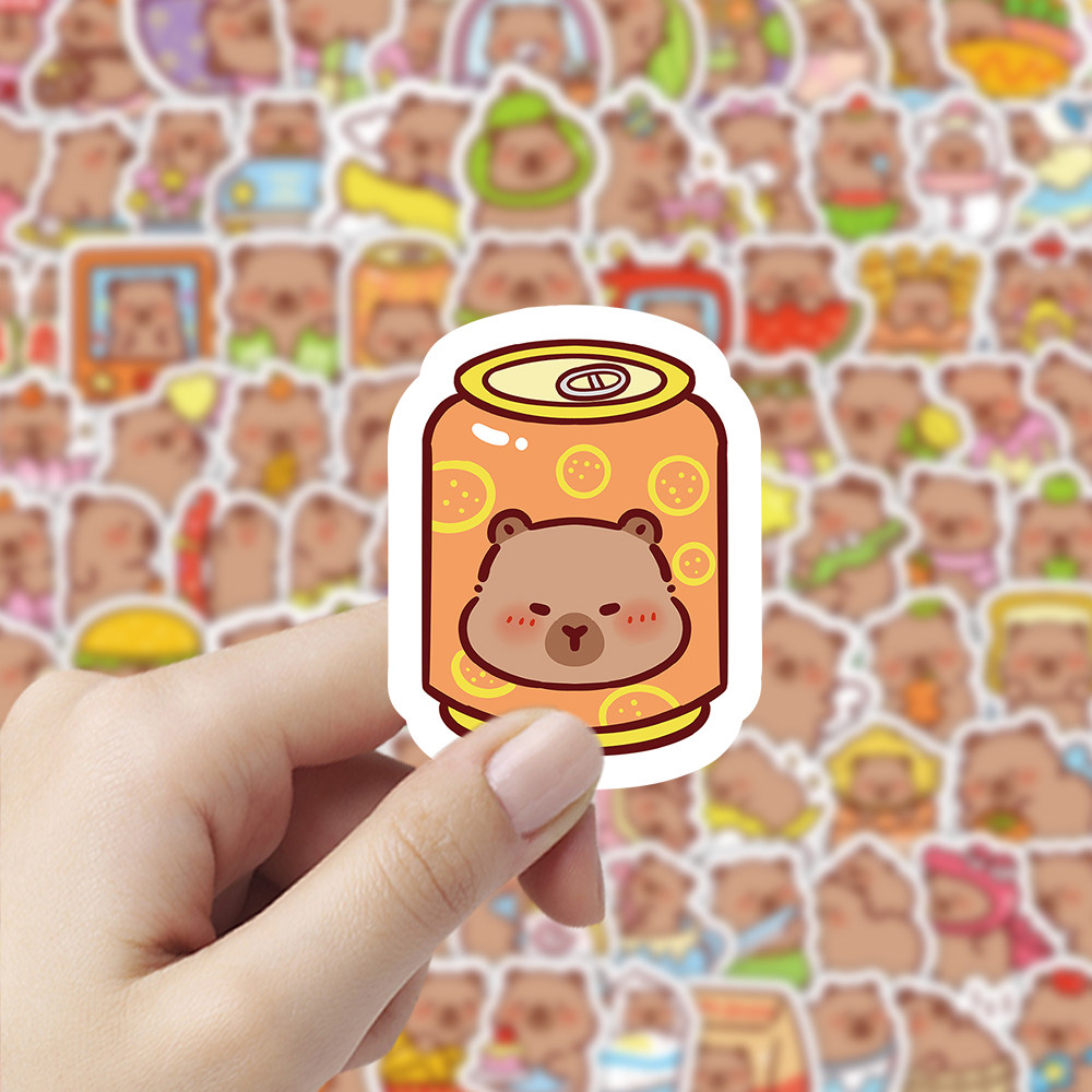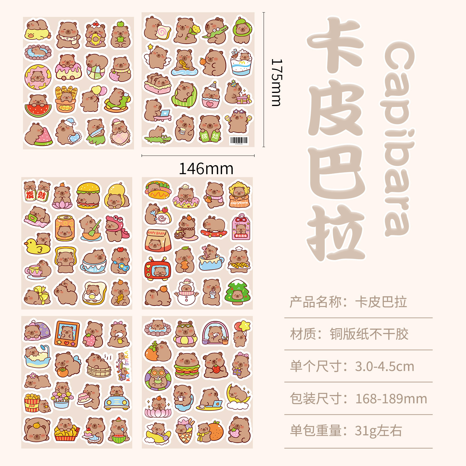 102张卡皮巴拉贴纸卡通可爱表情包周边装饰手机壳电脑防水贴画diy