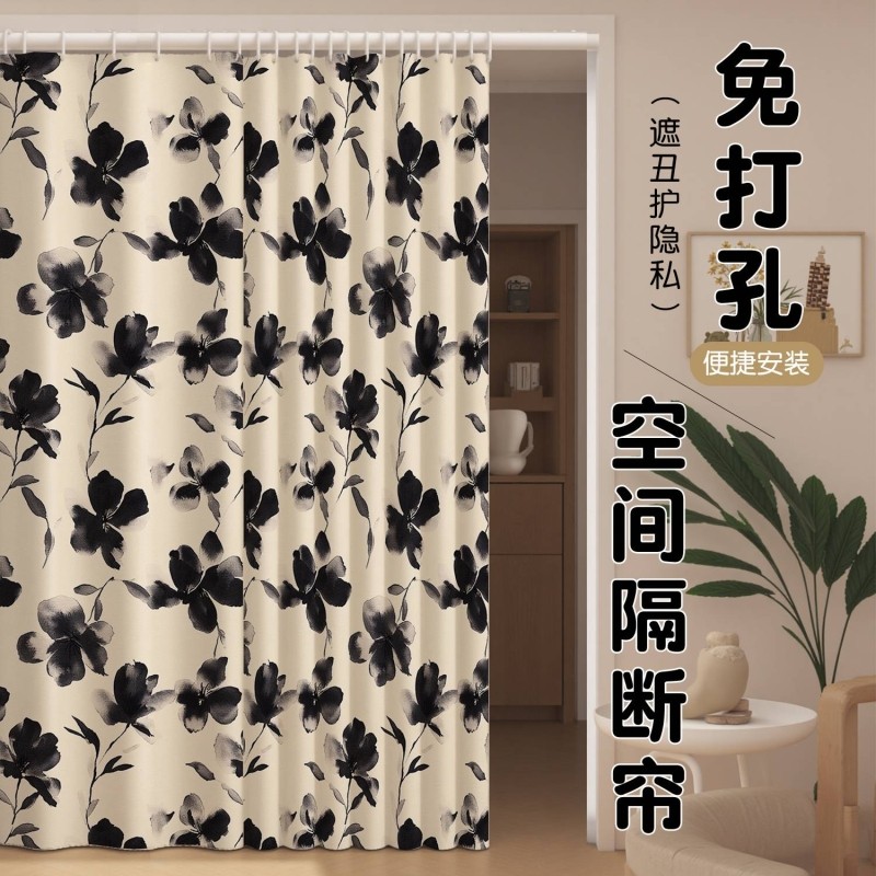 免打孔伸缩杆安装窗帘门帘隔断帘护隐私客厅阳台卧室成品帘子新款